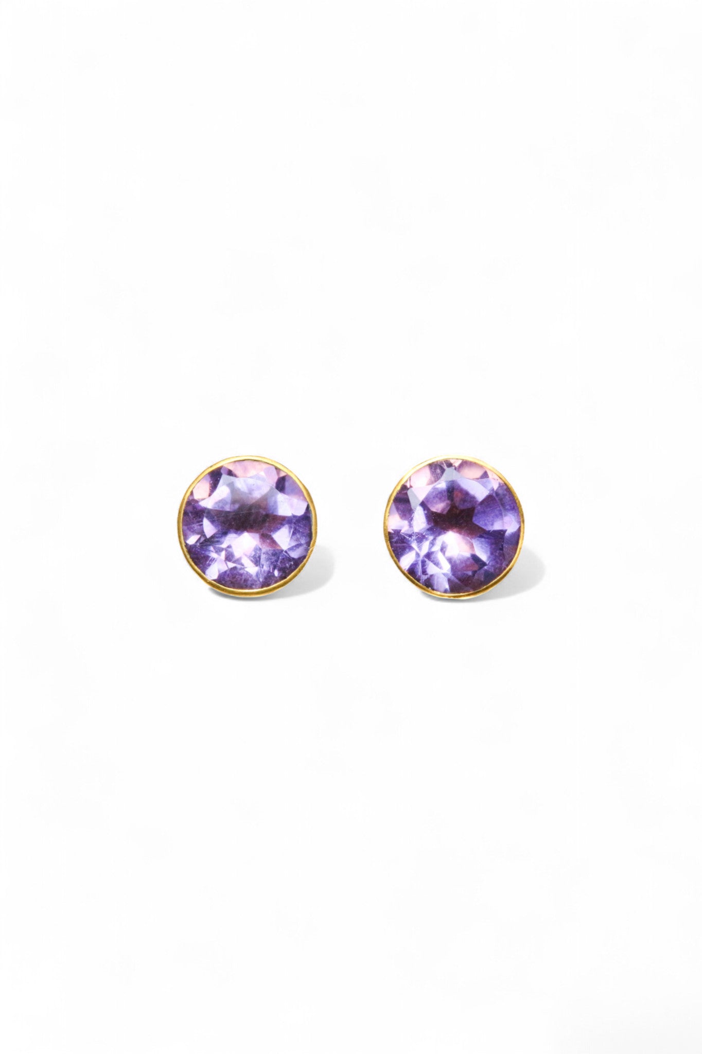 A joyful ode to India’s beloved Bindi, these luminous Amethyst stud earrings glow with a warm violet light. Marie-Hélène de Taillac captures the spirit of this ancient symbol of beauty and protection, recast in her signature 22K yellow gold. Petite yet full of presence, each round amethyst is cupped in hand-finished gold for a soft, radiant finish.