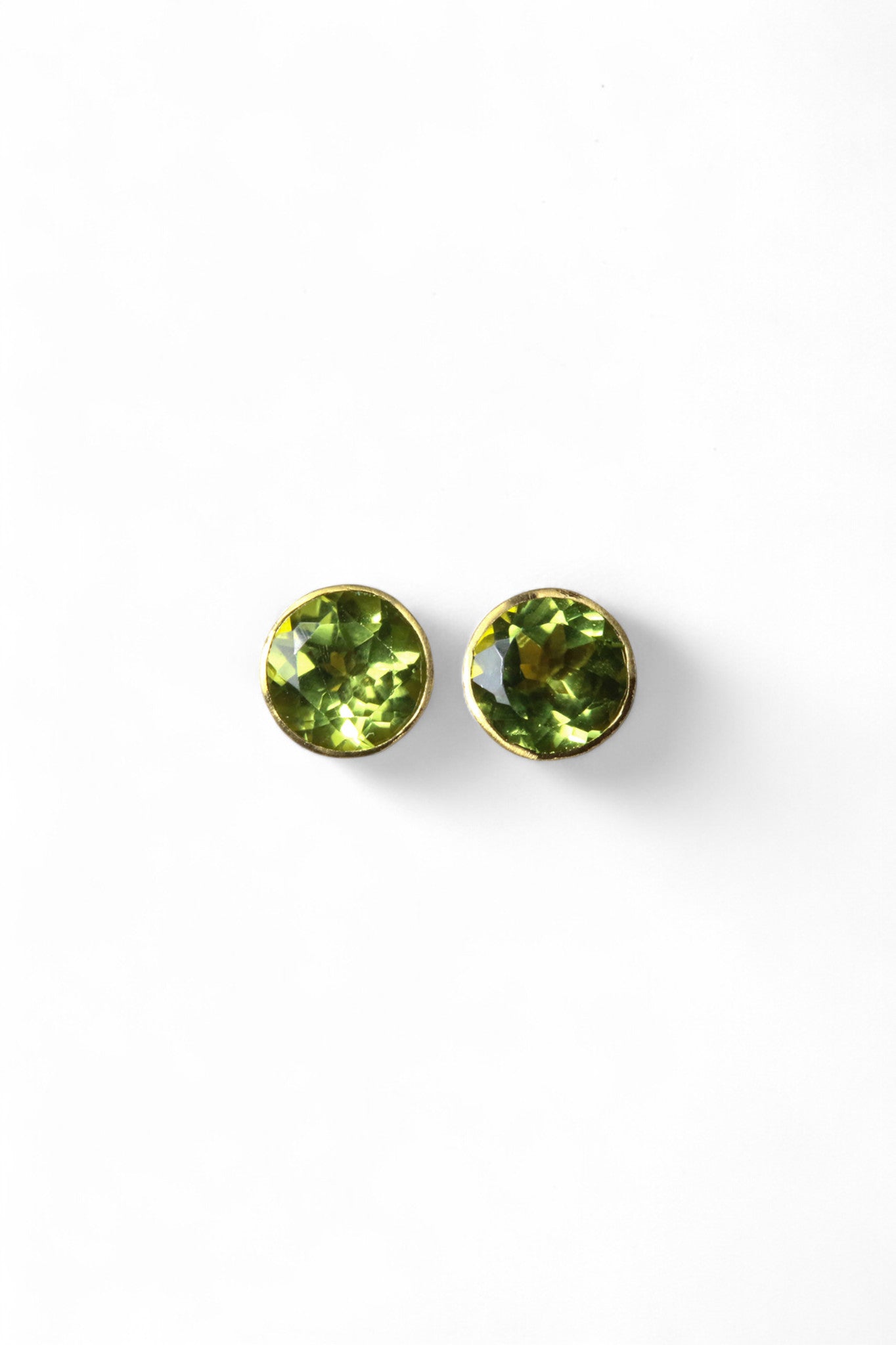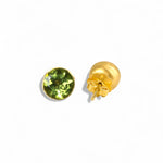 Each round peridot is held in a softly sculpted gold cup, allowing light to flicker across its bright, verdant facets. Perfect for newly pierced ears and effortless in a second or third piercing, these studs bring a spark of color and a touch of happiness to every day.