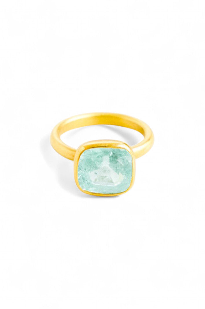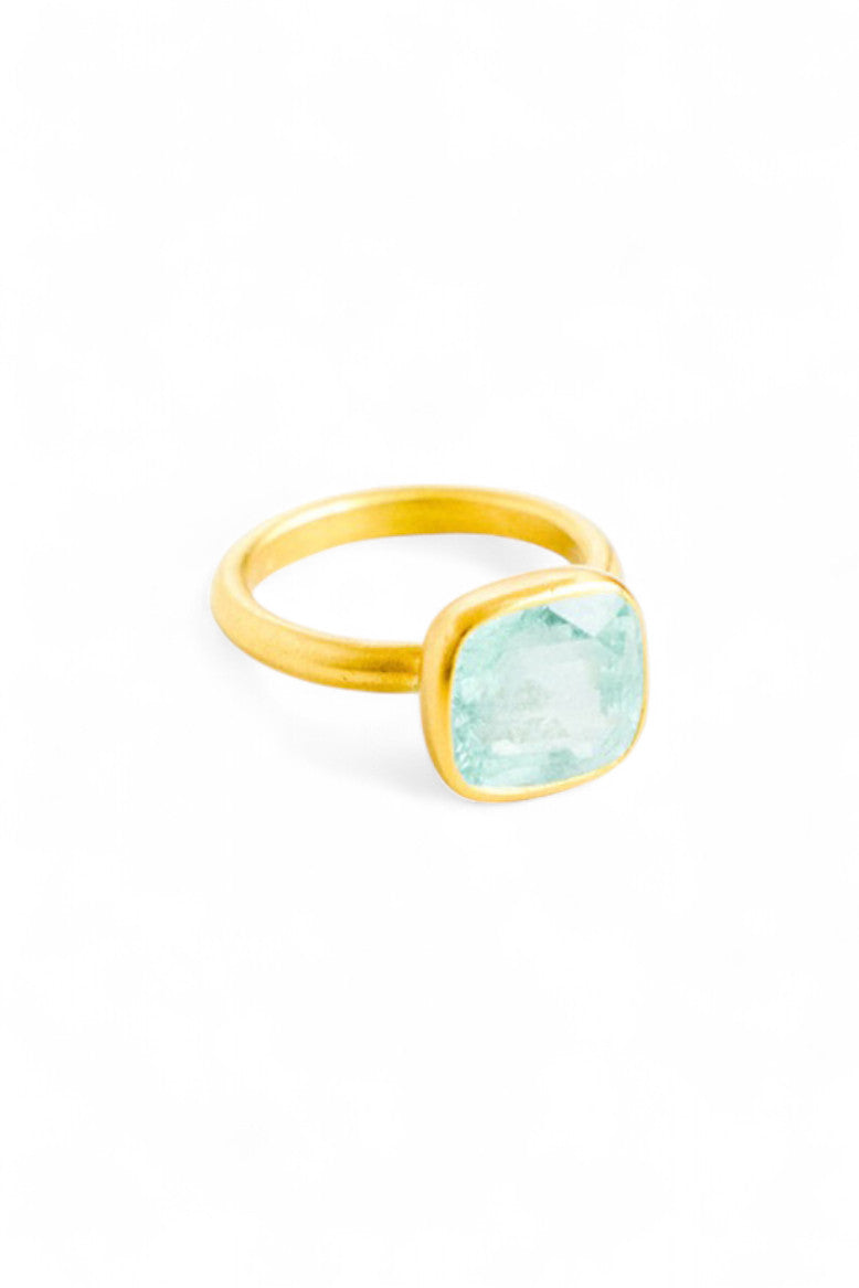 Marie-Hélène De Taillac 22K Yellow Gold Light Blue Green Tourmaline Princess Ring