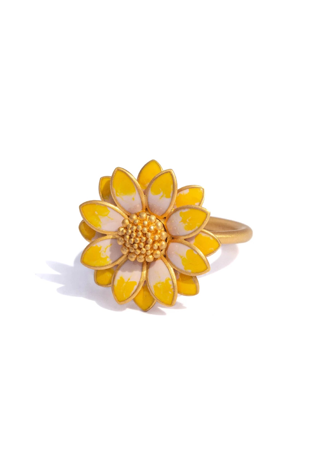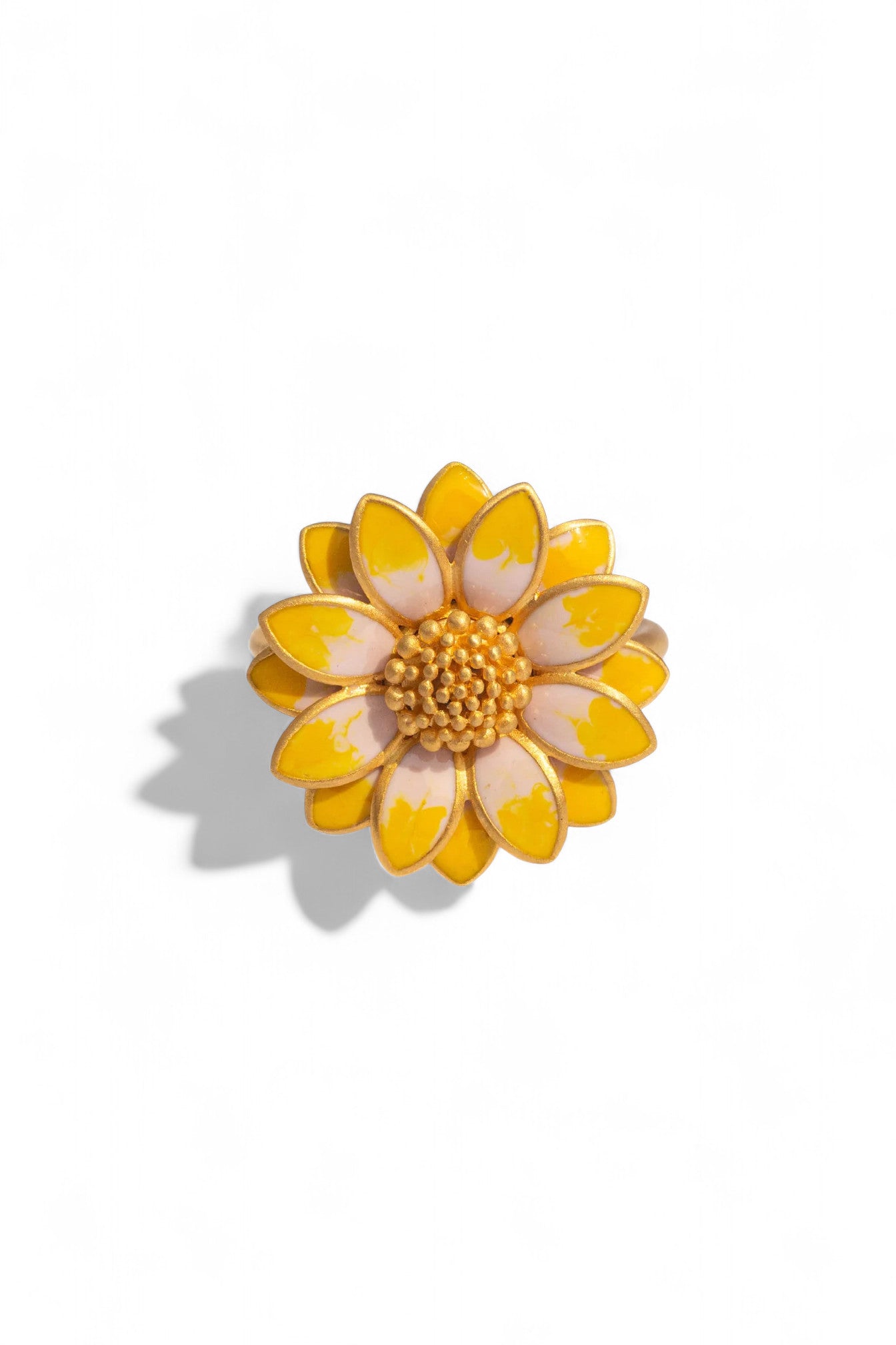 Marie-Helene de Taillac 22K YG Enamel Pink & Yellow Sunflower Ring