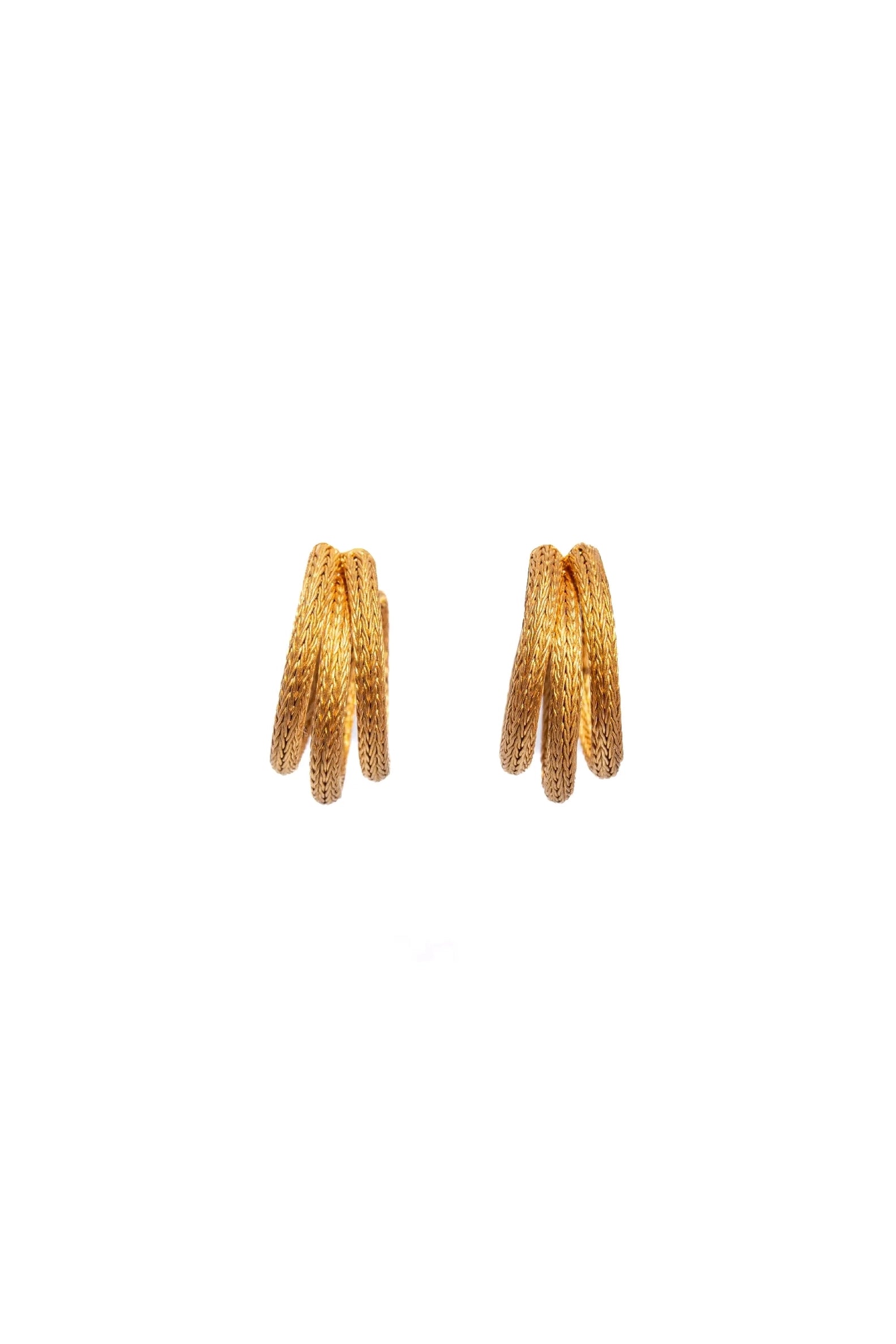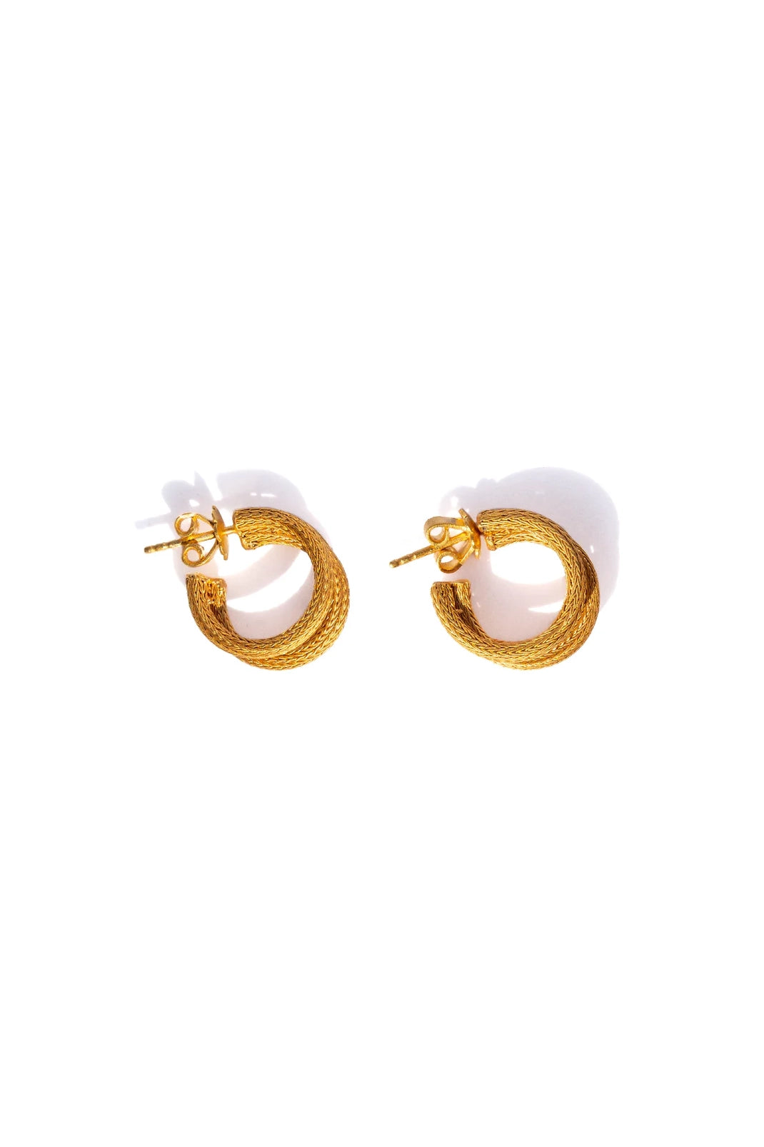 A signature design from Marie-Hélène de Taillac, the Serafa Extra Small Triple Hoops in 22K yellow gold feature a beautifully braided, rope-like texture that creates the illusion of three interwoven hoops. Compact yet full of character, these radiant earrings add a touch of effortless French elegance to everyday style. Lightweight and comfortable, they transition seamlessly from daytime chic to evening sophistication.