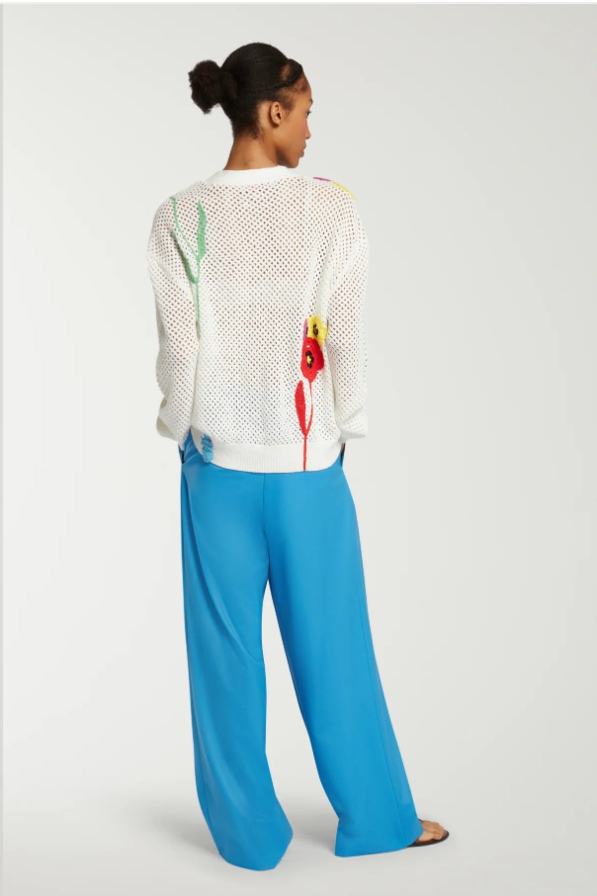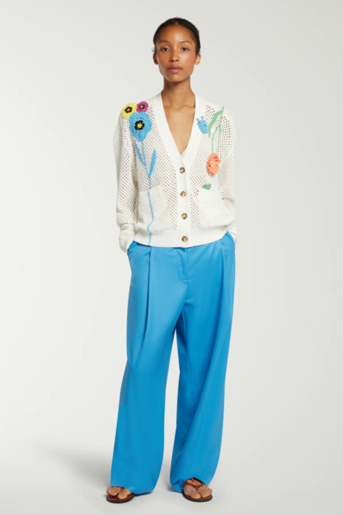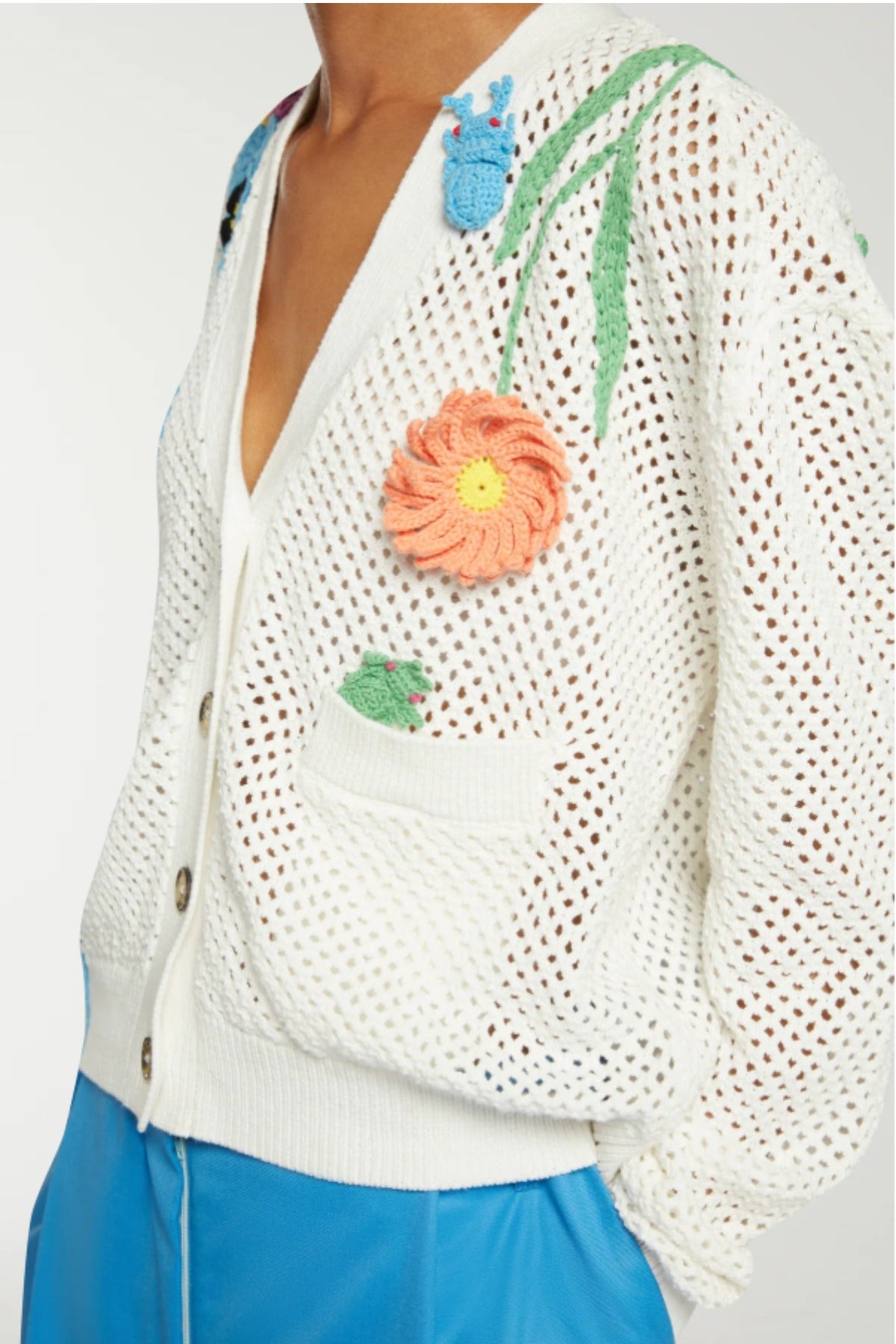 Mira Mikati Flower Crochet Cardigan is part of the Spring 26 Collection. Mira shares her favorite picks from the market with this floral crochet design. Crafted from organic cotton, this open-knit cardigan features flowers in every color of the rainbow, branded horn buttons and a ribbed hem, trim and cuffs for extra durability.