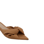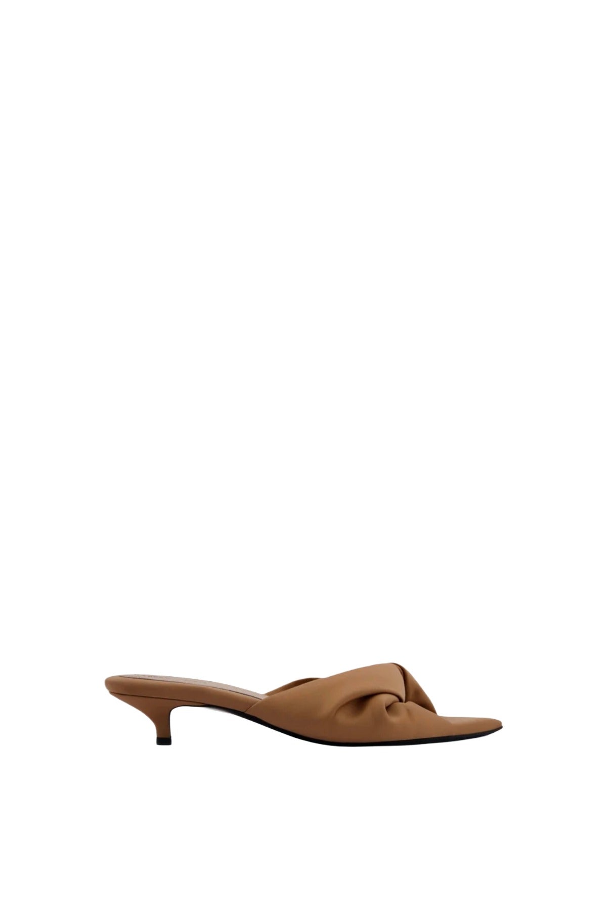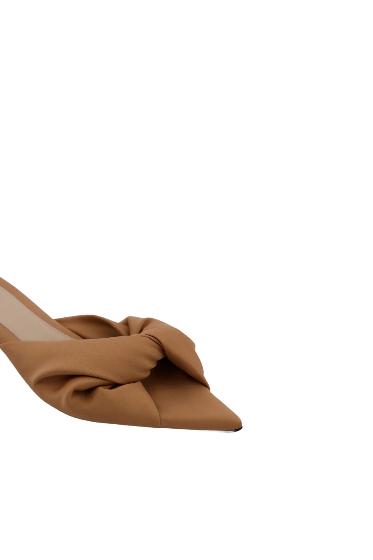 INFO Coupole open-toe shoe in Carven nude matte satin. The shoe features a padded, twisted upper and a 50s kitten heel. |
