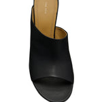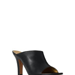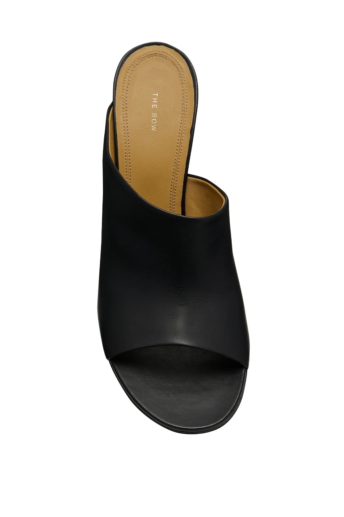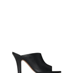 INFO Heeled mule sandal in soft calfskin leather with curved, asymmetrical vamp and nappa leather lining. |