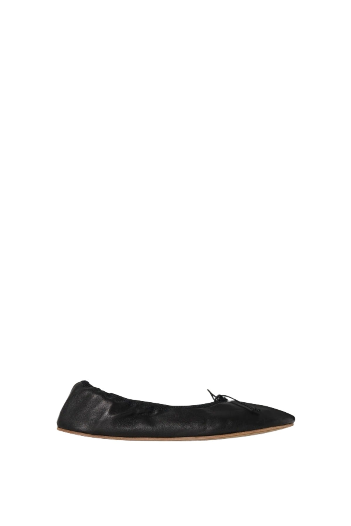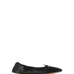 The Row's round ballet flats are a classic ballet flat in smooth nappa leather with grosgrain piping, adjustable elastic tie, and flexible leather sole.