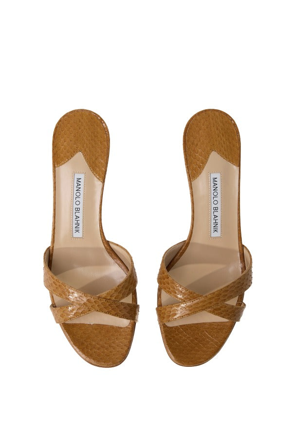 Manolo Blahnik Callamu Open Toe Mule in Light Brown
