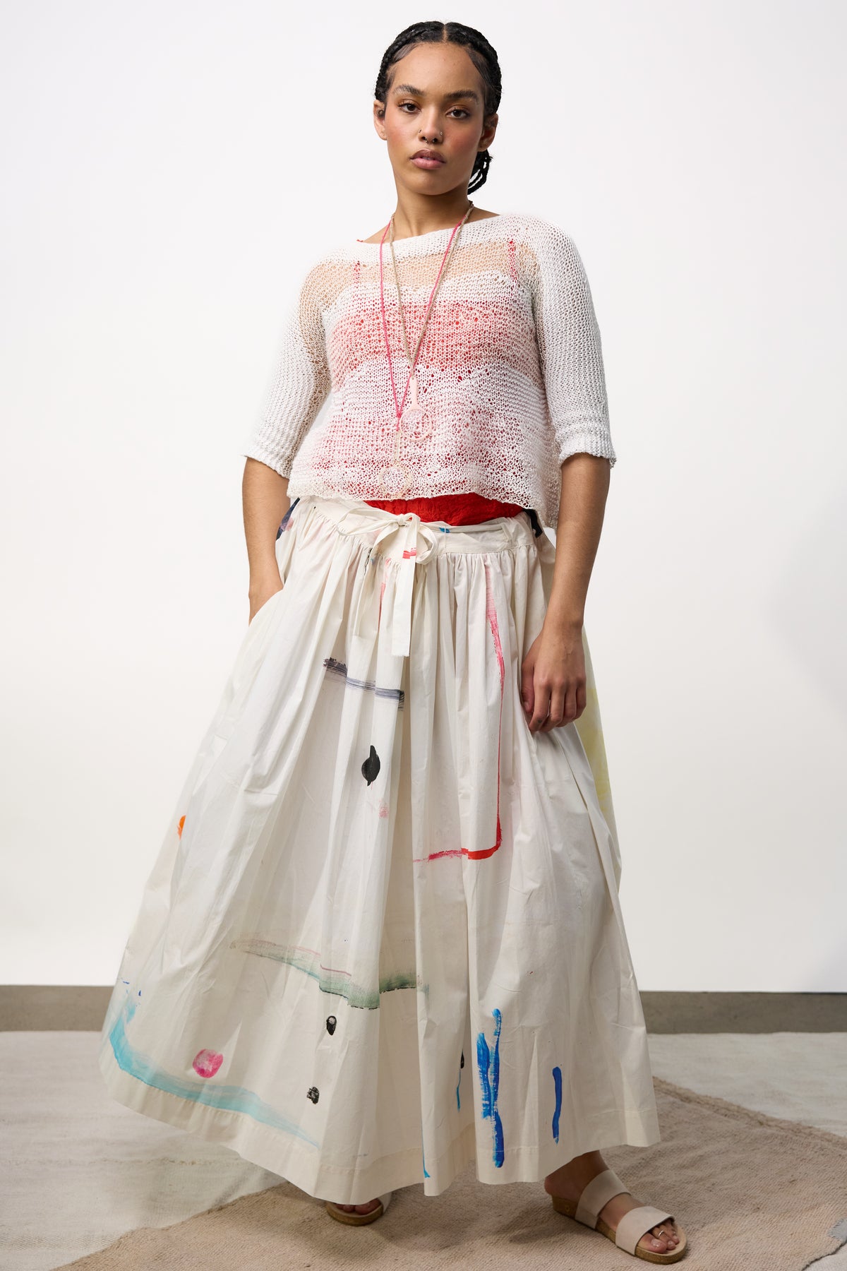 INFO Cotton Crocheted Boatneck Sweater in Mix Creme from Daniela Gregis |