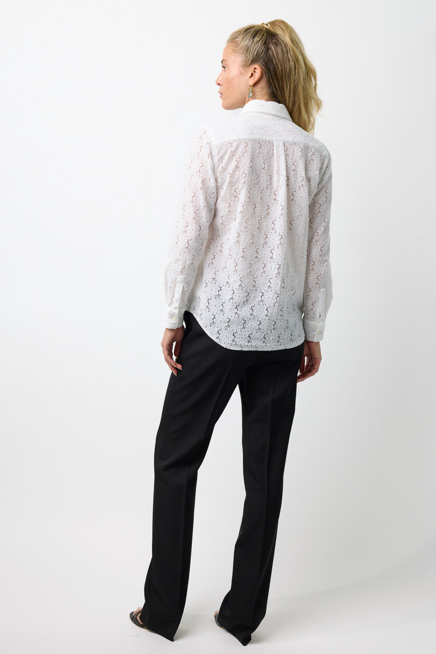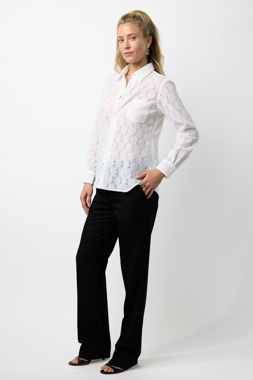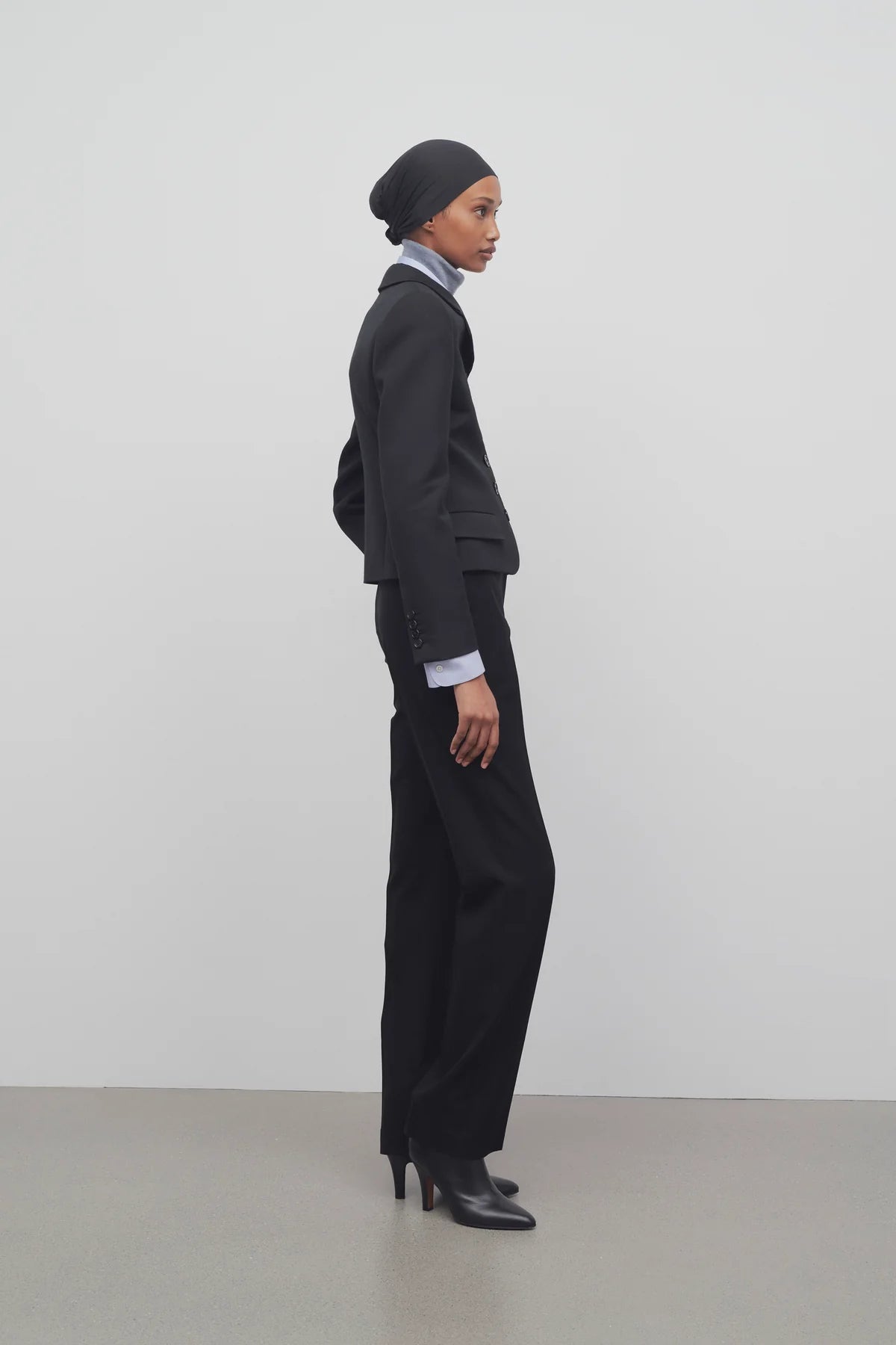 Jesse Pant in Wool Long, mid-rise tailored pant in Japanese wool with pressed front and back creases, tailored waistband construction, and side slash and back besom pockets. |
