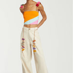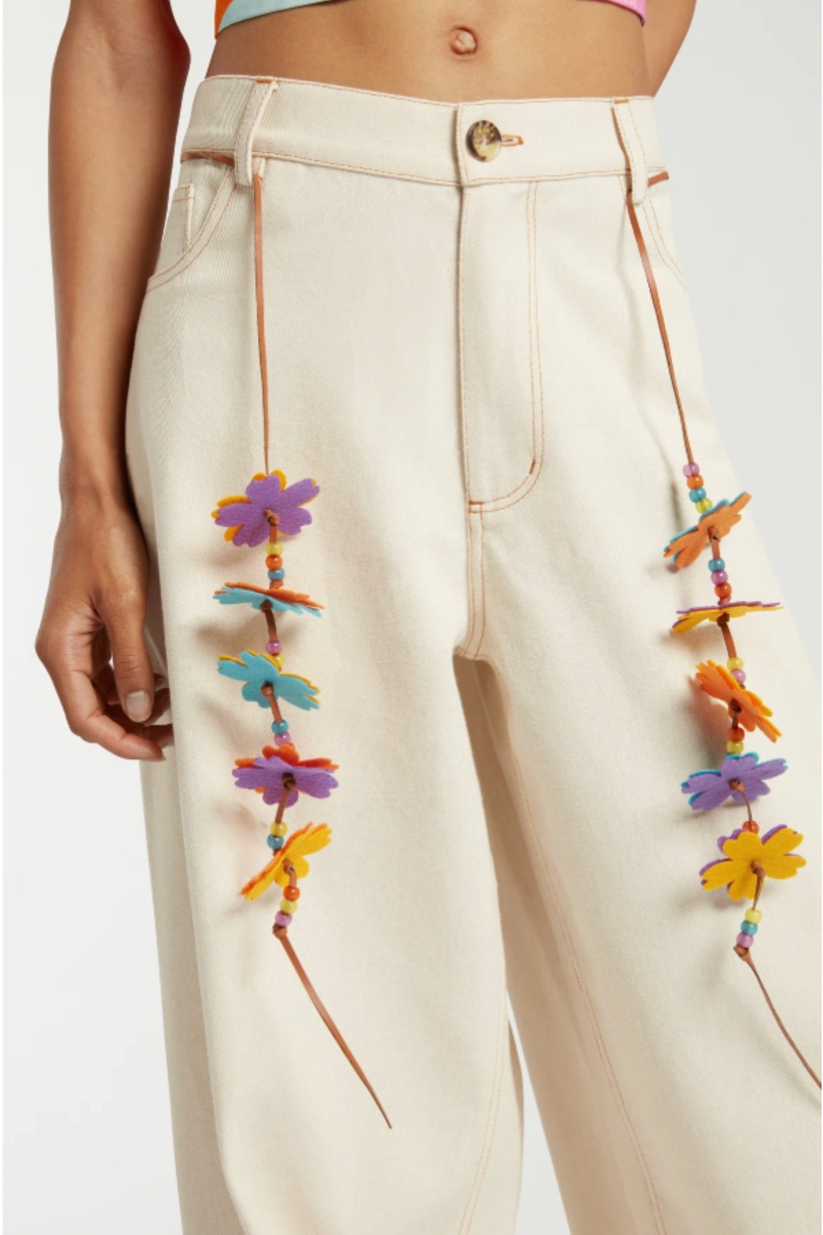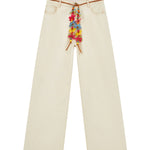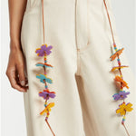 Mira Mikati Relaxed Cotton and Twill Trouser is part of the Spring 26 Collection. Mira has put her playful stamp on these wide-leg trousers with a detachable belt. Made from leather cord, it features some of her favorite flowers and colorful beads. Crafted from recycled cotton, these trousers also feature a branded horn button fastening and classic five-pocket design.
