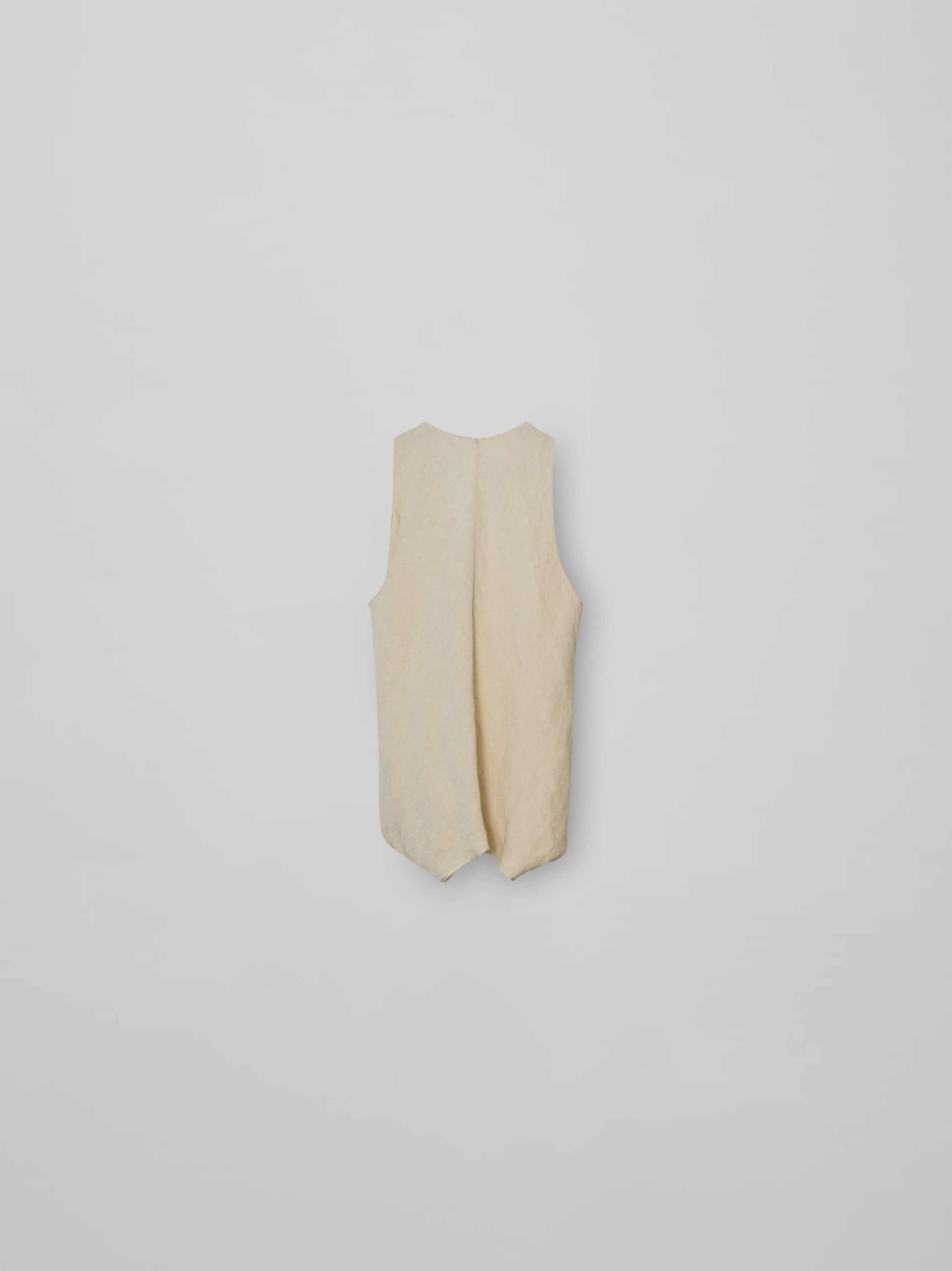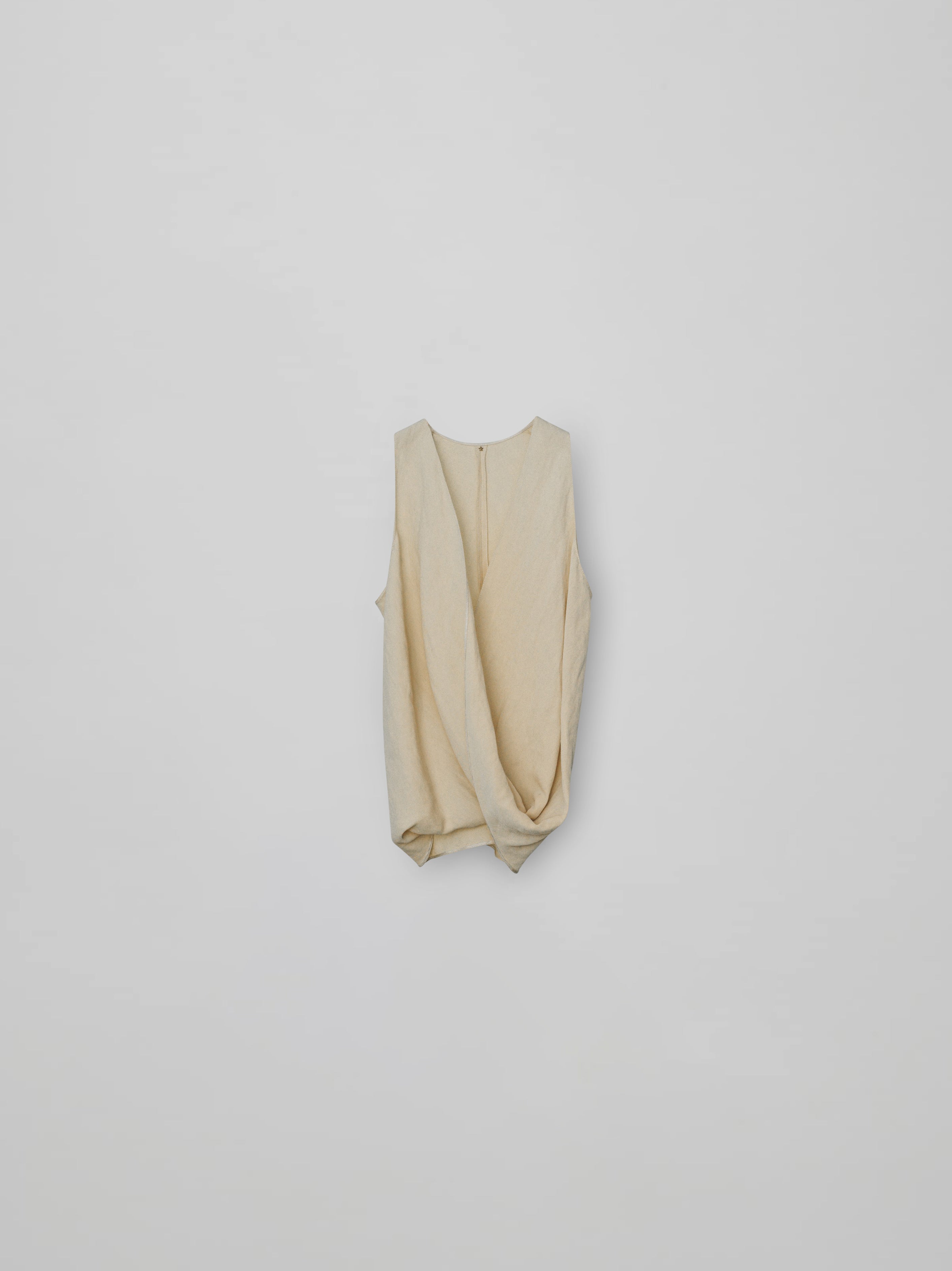 Effortlessly elegant, the Tide Top by Peter Cohen features a softly draped front that gathers with natural ease. Cut in a sleeveless silhouette with a subtle V-neckline, the design gently tapers at the hem, creating a flattering, fluid shape. Finished with a clean back zip and a minimalist construction, it’s an ideal layering piece or standout on its own. Crafted in a lightweight, textured fabric that moves with quiet sophistication.