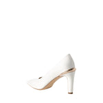The Edwina Heel is a classic black stiletto pump featuring a gold-brass detail in nappa leather.