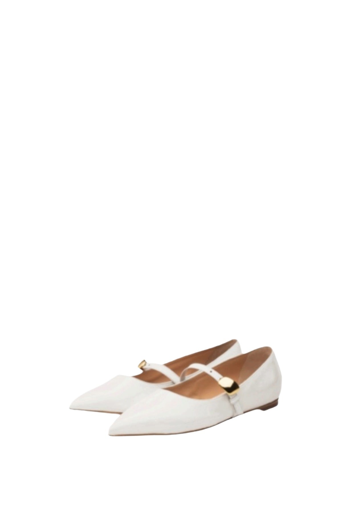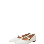 Rupert Sanderson Innis Flat is part of the Fall 25 Collection. The lovely refined Mary Jane flat, Innis, is introduced this autumn. A miniature rendition of our signature gold pebble adorns the buckle, adding a touch of style and modernity to a classic shape.