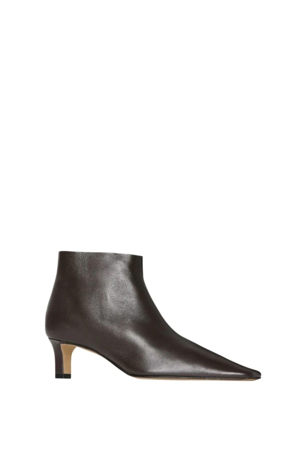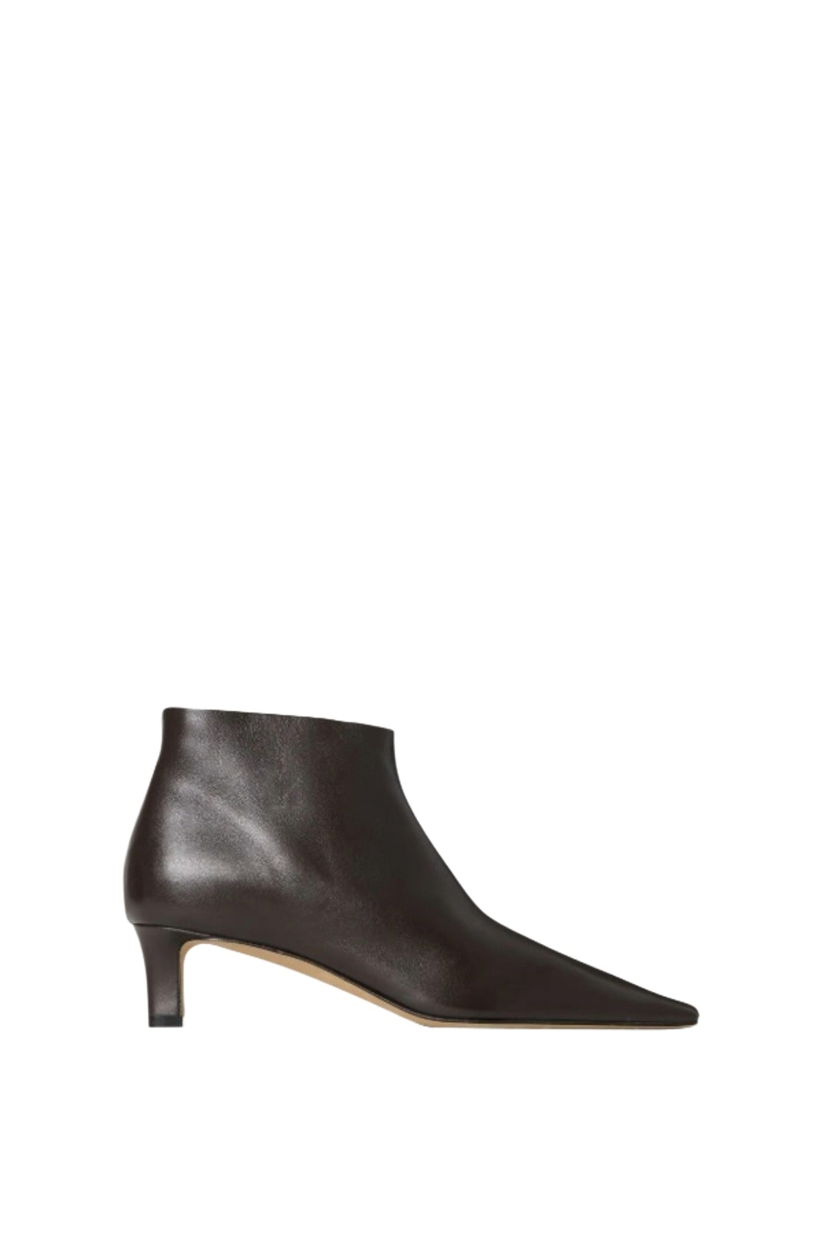 The Row's Carla Boot 45 are part of the Fall 25 Collection. A refined ankle boot in soft nappa leather with tapered square toe, inner side zip closure and leather sole.