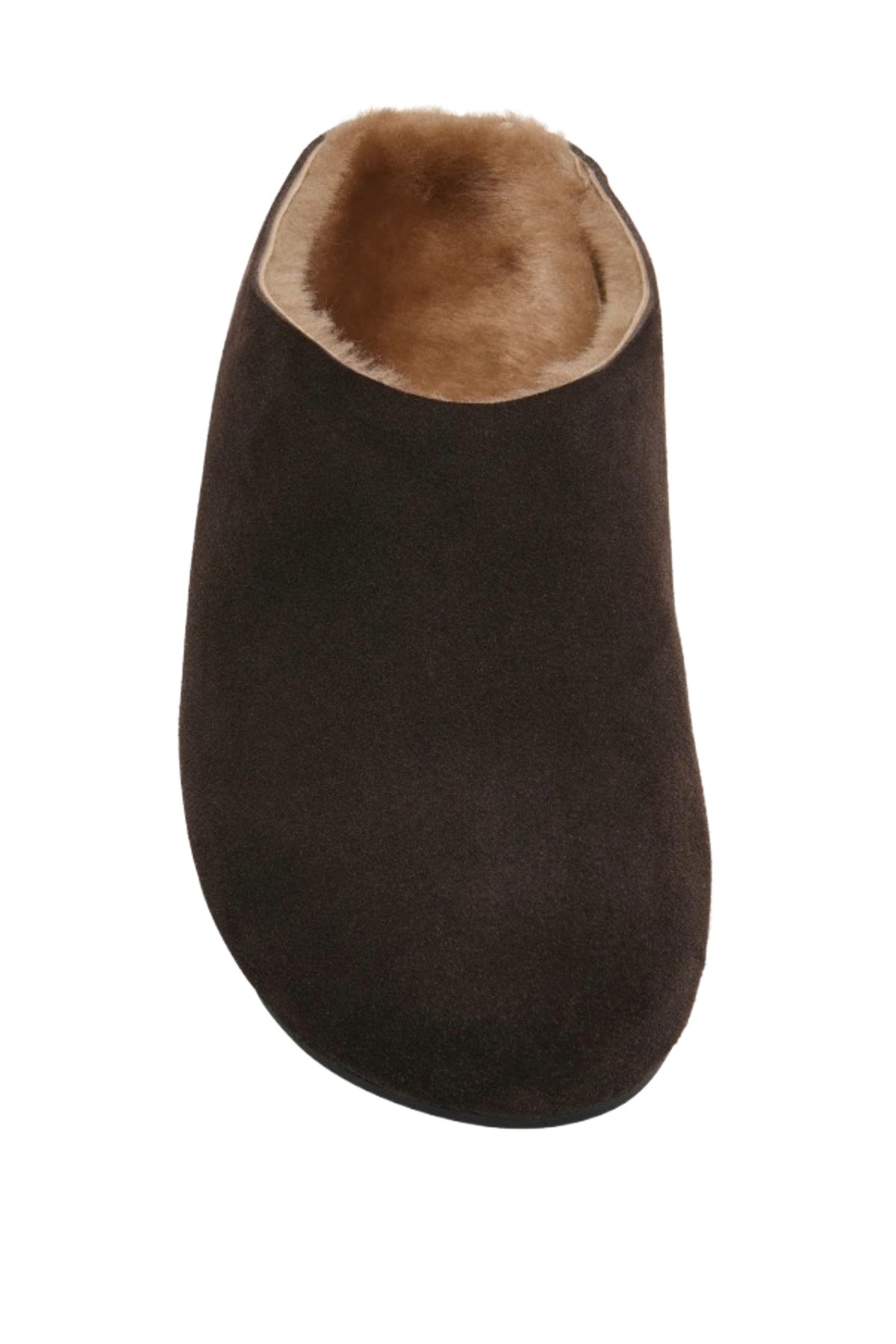 The Row Hudson Suede and Shearling Slides are part of the Fall 25 Collection. Relaxed slip-on shoe in natural suede and soft shearling with round toe, contoured footbed, and rubber sole.