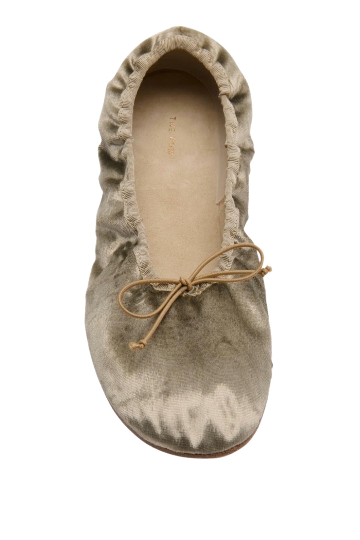 The Row's velvet round ballet flats are part of the Fall 25 Collection. A classic ballet flat in sleek velvet with grosgrain piping, adjustable elastic tie and flexible leather sole.
