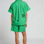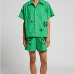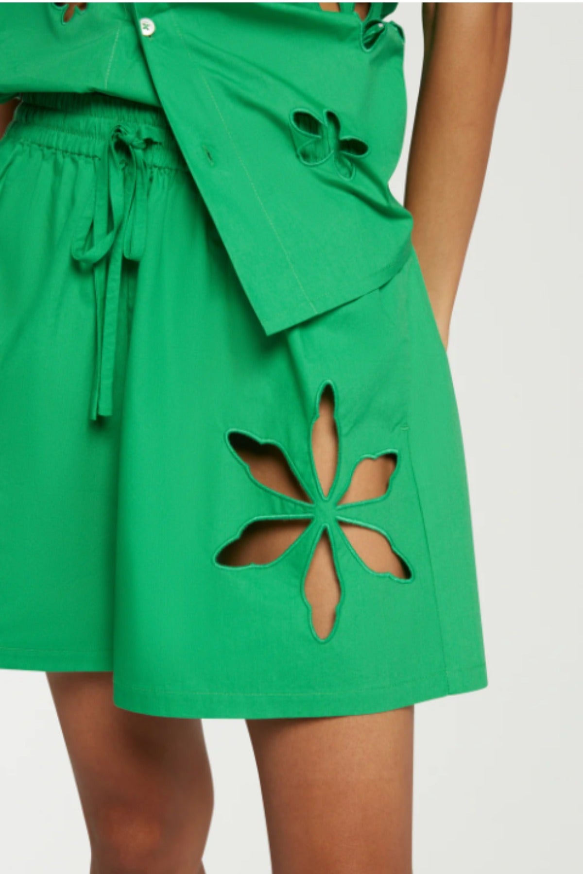 Mira Mikati Cut Out Shorts are part of the Spring 26 Collection. A lightweight co-ord makes summer dressing a breeze. Pair these crisp cotton poplin shorts with our matching shirt in bold green for effortless impact this season. This relaxed style features an elasticated waist, drawstring tie, and cut-out florals – a nod to Mira’s love of nature.