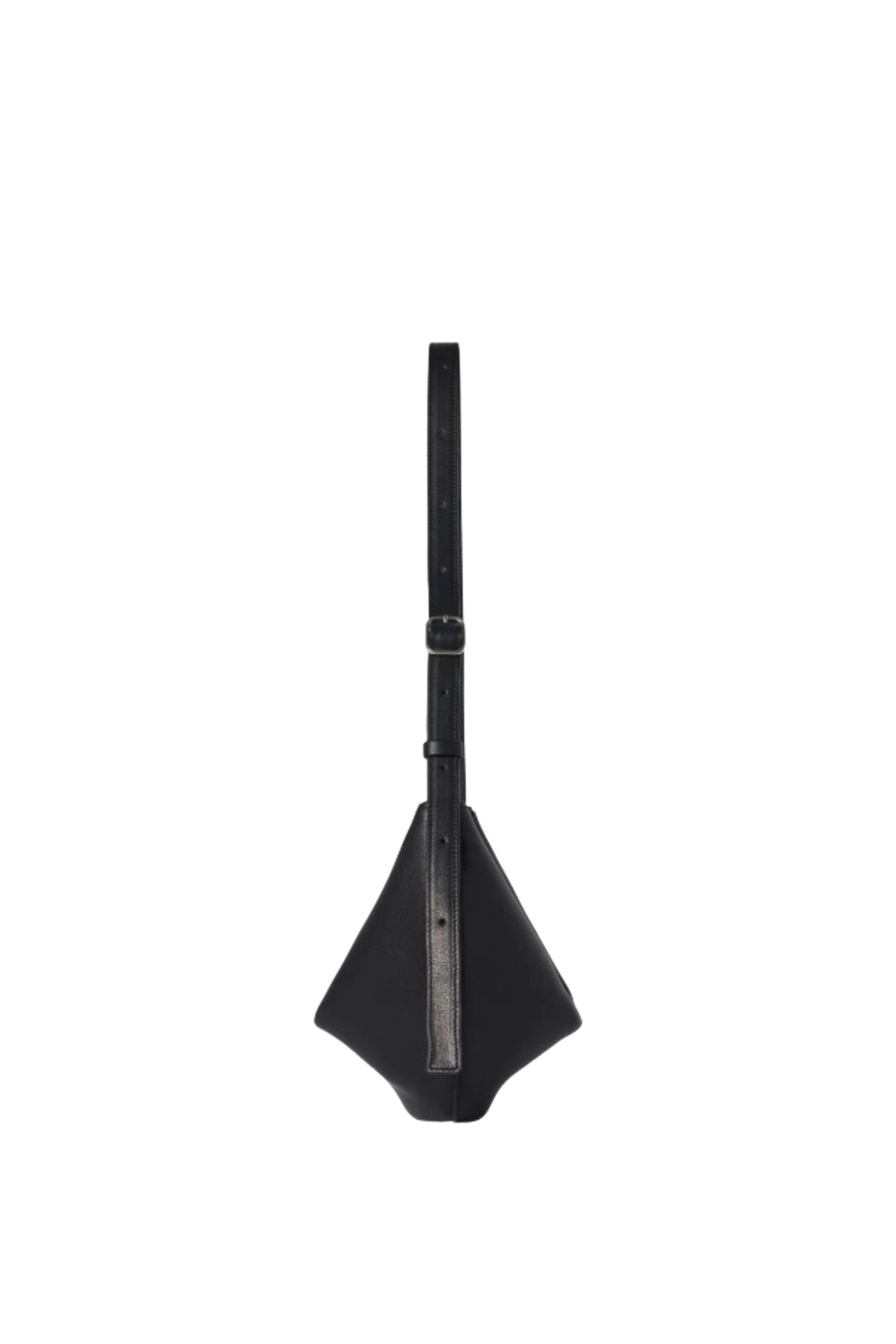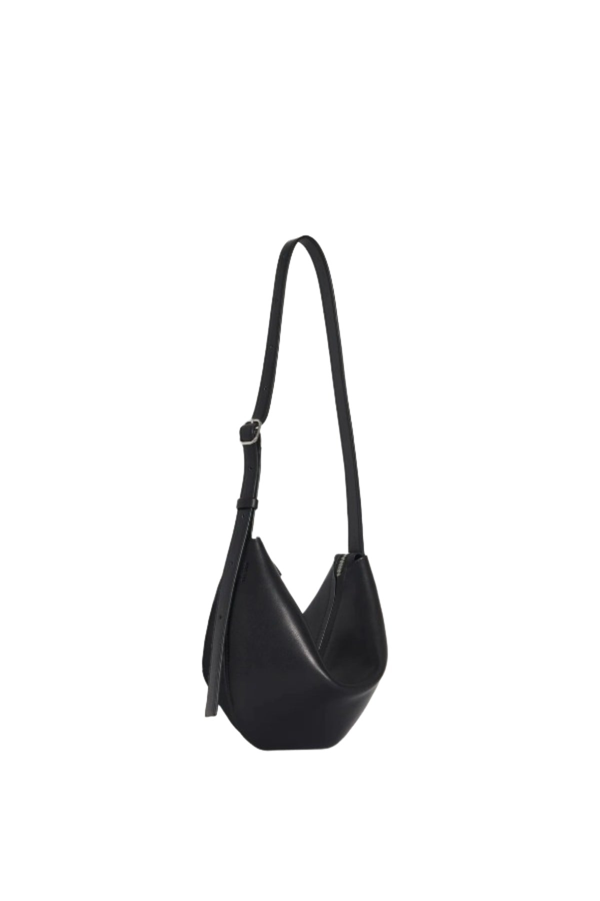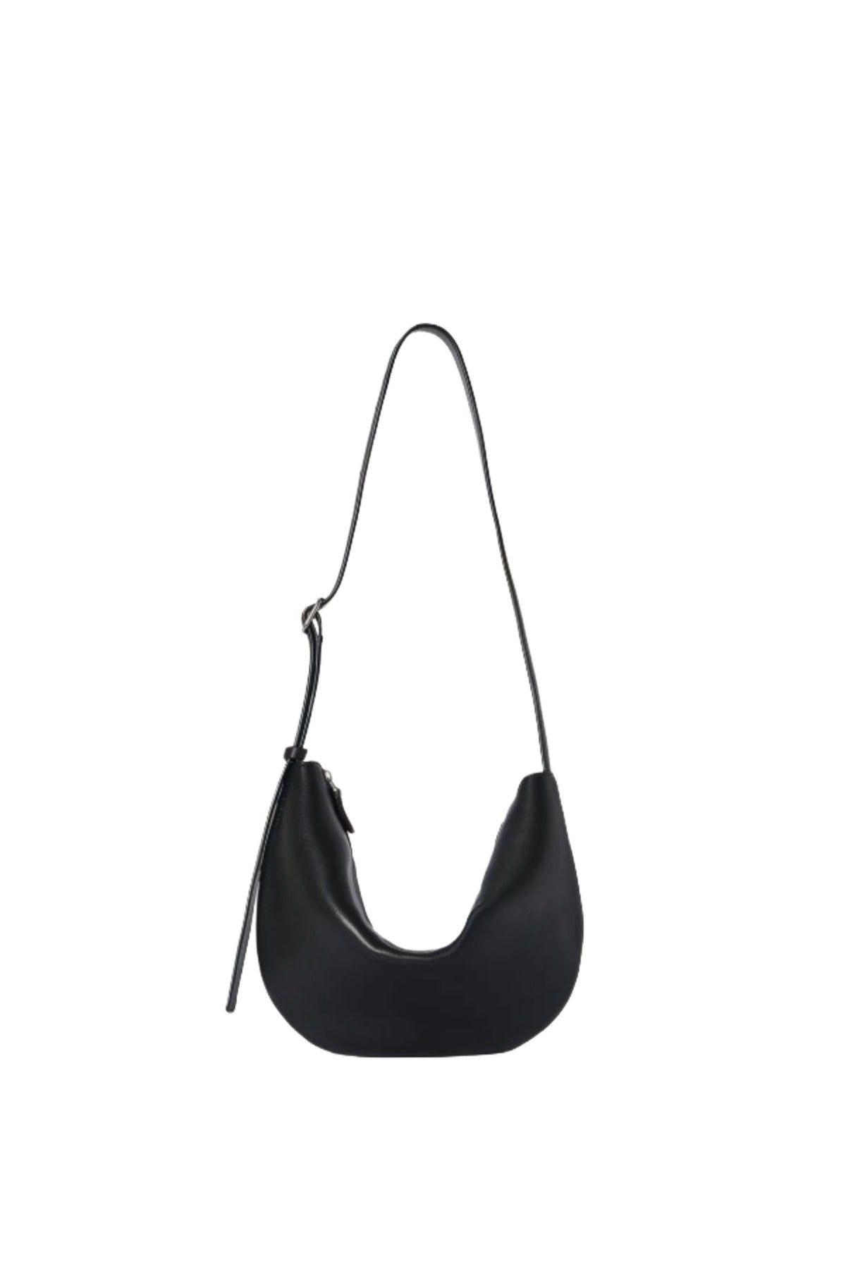 The Row Jouvette Bag is part of the Fall 25 collection. Crescent-shaped crossbody bag in finely grained calfskin leather with zipper closure and adjustable strap with metal buckle.