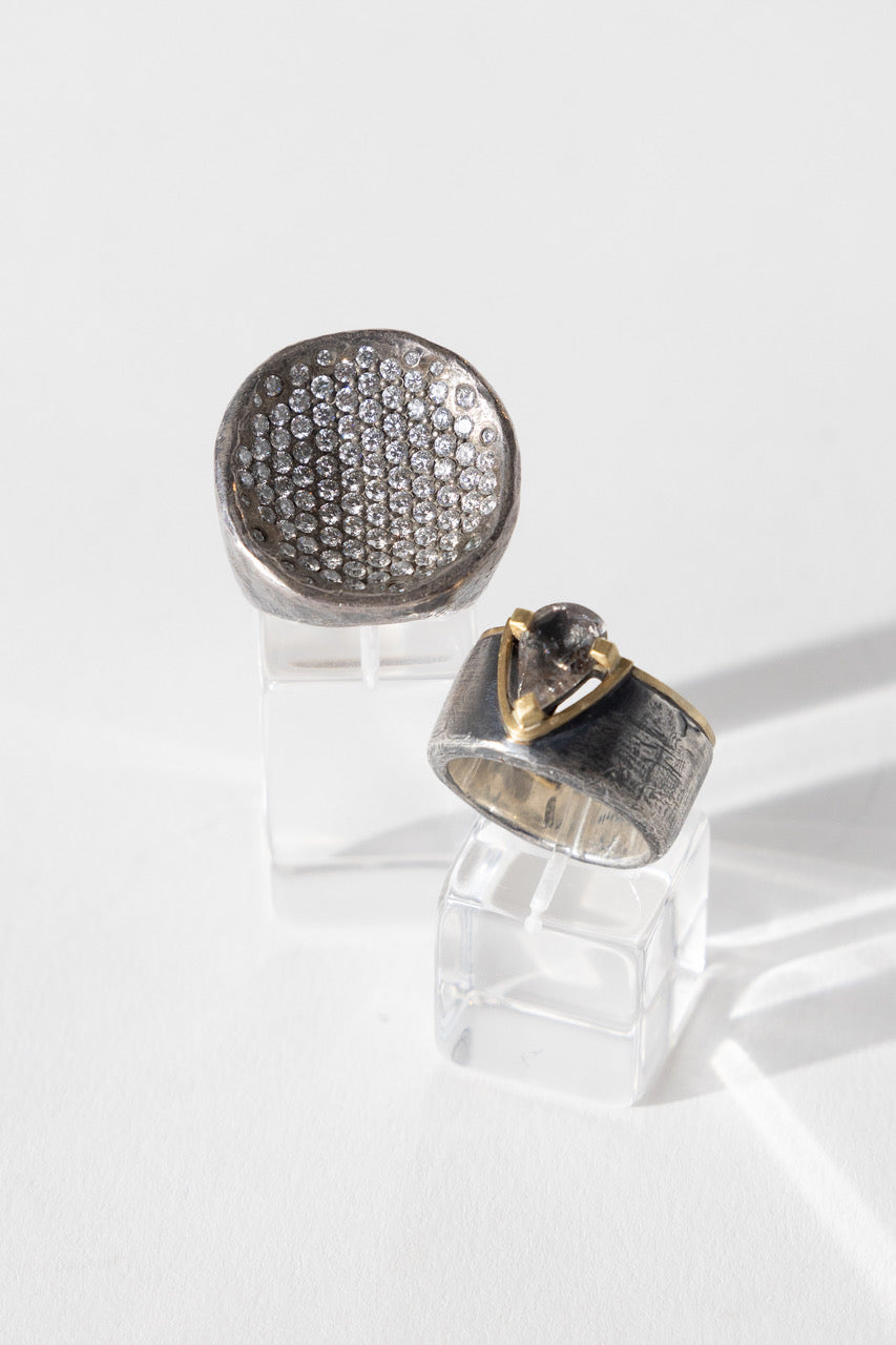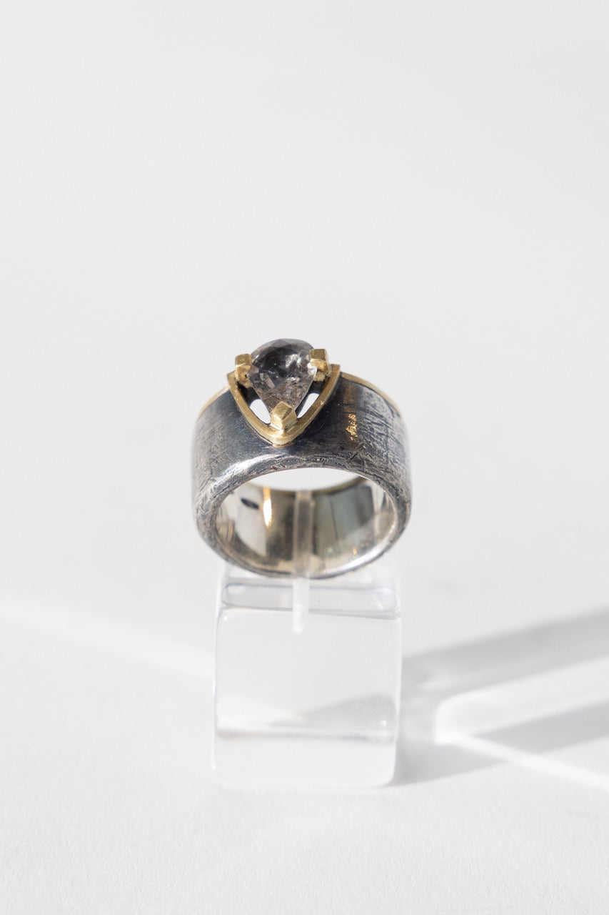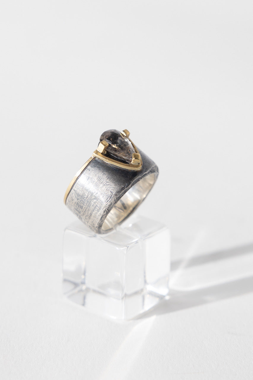 Sterling Silver and 18K Yellow Gold Cigar Band with Bezel Set Umbra Sapphire