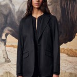 INFO Long single-breasted one-button jacket, deconstructed and unlined, featuring two patch pockets and spear lapels, made in cotton. |