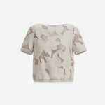 While sophisticated in style, this model is easy to wear thanks to the boxy fit and elasticated insert at the bottom. It features details made from taffeta with a water-repellent treatment applied to the yarn and slightly shimmering finish that has a sporty yet elegant appeal. Boxy fit Boat neck Short sleeves Elastic at bottom Metal Herno logo on the back Made in Italy |