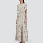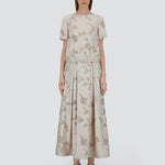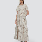Top in fine fil coupé jacquard fabric embellished with a three-dimensional floral motif.