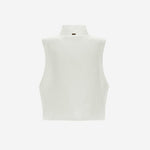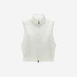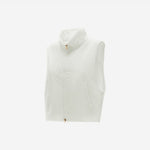 INFO Vest made of recycled nylon microfibre combined with a lightweight two-layer waterproof scuba fabric. |
