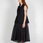 Solange Silk Organiza Skirt - Black School-uniform-inspired pleated midi skirt.Box pleats and gathers at the waistline, creating a voluminous silhouette. Elasticated waist, adjustable with inside drawstring. Concealed pouch pockets in the side seams. Crisp, silk organza, with a flower print inspired by natural, pressed flowers. Lined with soft, lightweight cotton fabric. Measurements Material : Silk Organza Composition : 100% Silk Country of origin : Made in France |