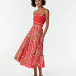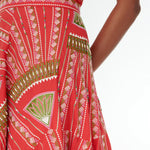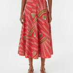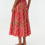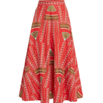 INFO The Tasha Skirt is a beloved A-line silhouette featuring intricate Japanese Peacock embroidery on a vibrant Red backdrop. With geometric shapes that create hypnotic diagonals, this skirt adds extra detail through hand-sewn beadwork on top of the allover embroidery. For a signature Emporio Sirenuse look, pair it with the matching Flavia Top. |