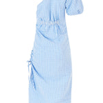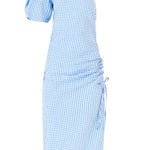 One Shoulder Puff Sleeve Dress in Seersucker Gingham |