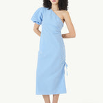 INFO The One Shoulder Puff Sleeve Dress in Seersucker Gingham. This modern take on a classic silhouette features a statement puff sleeve balanced by a sleek, asymmetrical neckline. The lightweight seersucker fabric in a charming blue gingham print offers a breezy, textured feel perfect for warm days. A ruched side detail with an adjustable drawstring allows for a customizable fit, adding a touch of versatility and playfulness to the look. Designed to flatter, this dress cinches at the waist for a subtly defined shape, while the easy-wearing shift silhouette ensures all-day comfort. The fabric is crisp yet soft, allowing for natural movement while maintaining structure. |