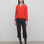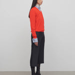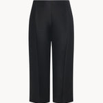 Adelie Pant in Wool and Silk Tailored capri pant in structured wool and silk with pressed front and back creases, side seam and back besom pockets, and classic hem with side slits. |