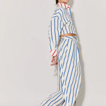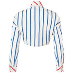 INFO The Gussied Up Button Down in Coastal Stripe Cotton is a fresh take on the classic button-down shirt. Designed with a cropped silhouette, this piece adds a modern edge to a timeless staple. The blue vertical stripes are contrasted by bold red accents on the collar and cuffs, creating a dynamic and eye-catching look. Crafted from crisp cotton, this shirt offers a structured yet breathable feel, making it ideal for both casual and elevated styling. Pair it with the Pleated Asymmetrical Pant for a coordinated ensemble that exudes effortless sophistication. |
