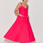 INFO The Pocktail Dress in Cotton Poplin in Magenta is a vibrant, effortlessly chic piece with a flattering A-line silhouette. Its structured yet lightweight fabric makes it perfect for both casual outings and dressed-up occasions. Plus, the pockets add a practical touch! Pair it with statement sandals or heels for a polished look, and accessorize with bold earrings to enhance its playful elegance. |