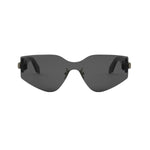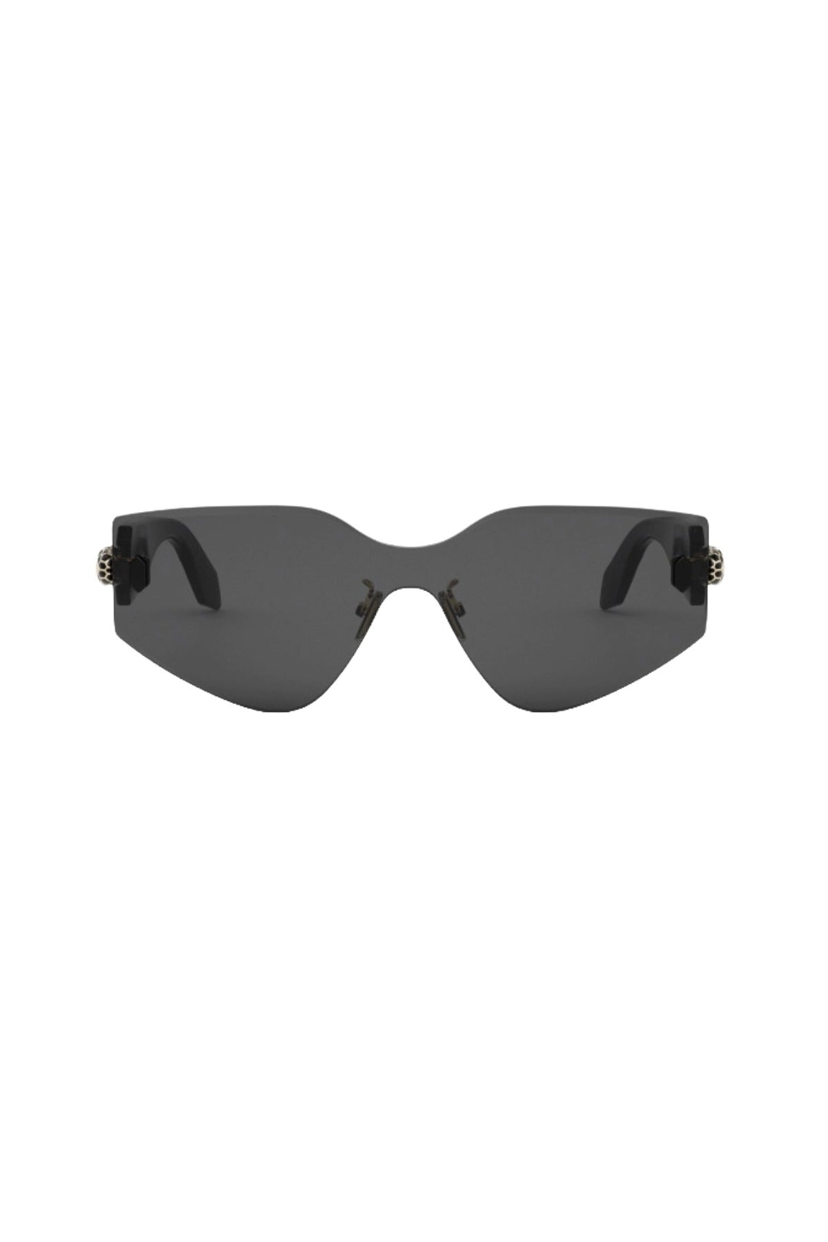 Iconic snake head on temples' head, featured on eye-catching rimless mask Lens size: 50mm Made in Italy |