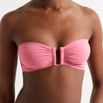 INFO As the ultimate underwire-free bandeau bikini top with a U-shaped metal link that separates its pleated cups, side stays and non-slip band, this iconic style is famous for its graphic and feminine cut. All sales are final. |
