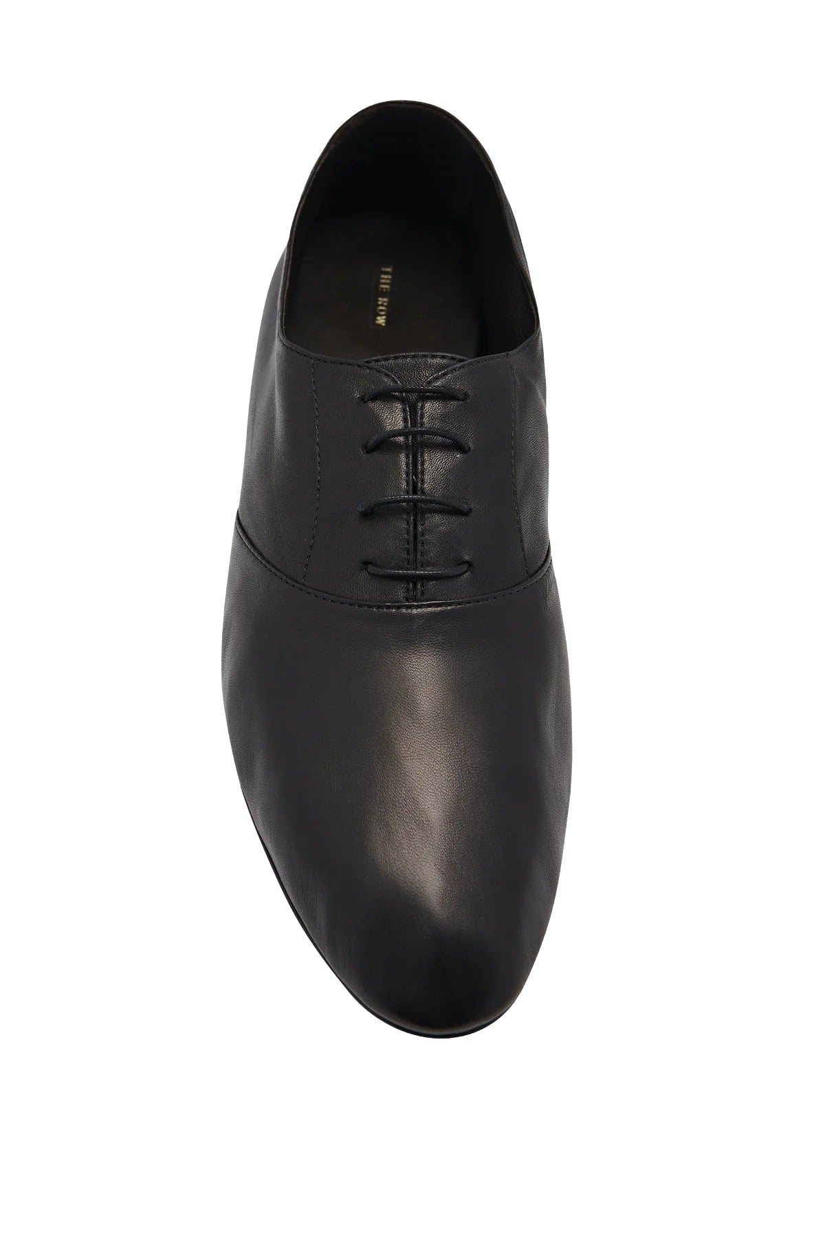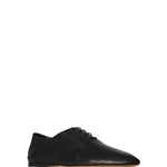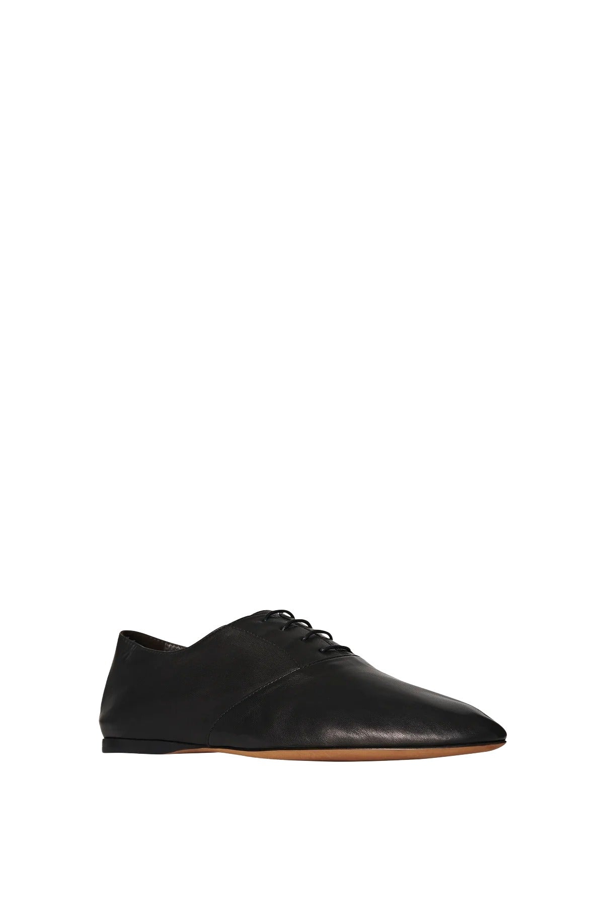INFO Minimal lace-up oxford shoe in smooth nappa leather with elongated almond toe and waxed cotton laces. |