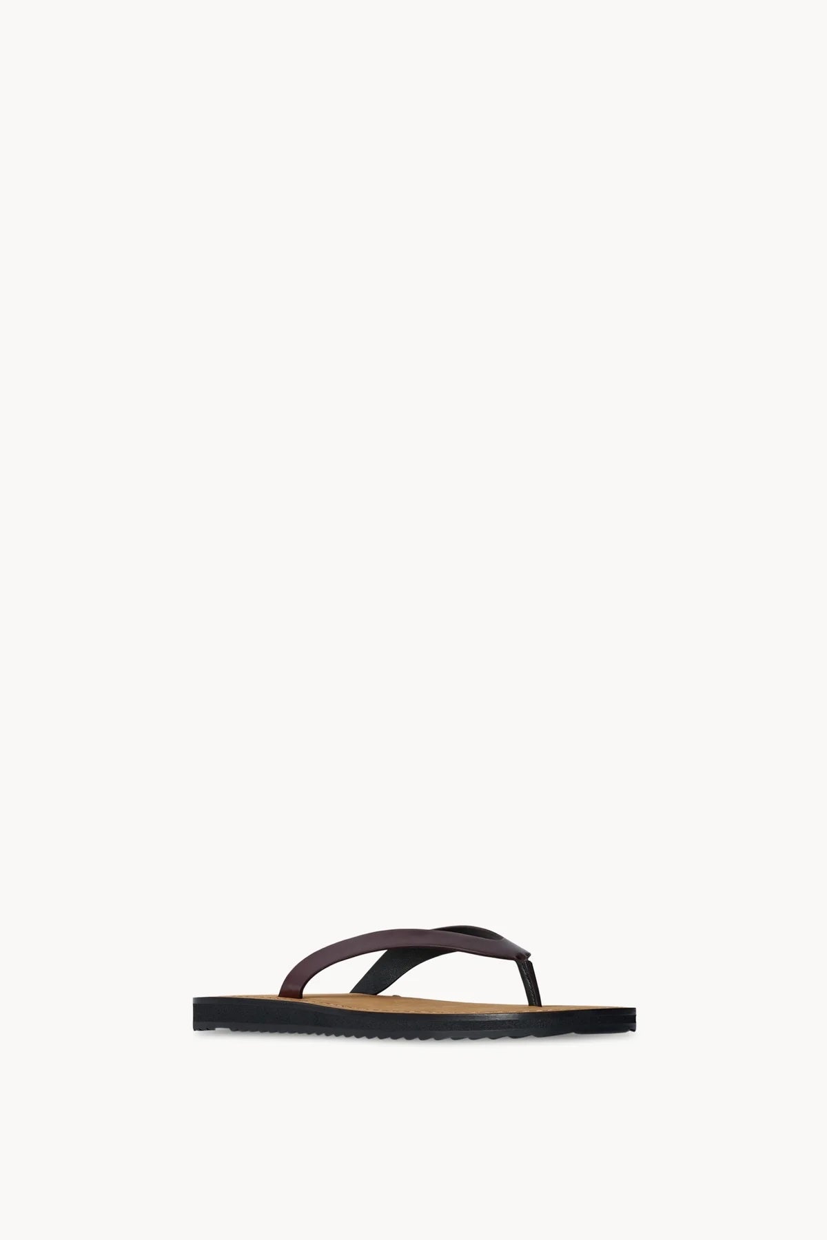 The Row City Flip Flop is part of the Spring 26 Collection. Refined flip flop sandal in shiny calfskin leather with stitched leather detailing and lightly treaded sole.