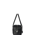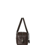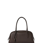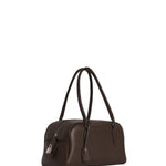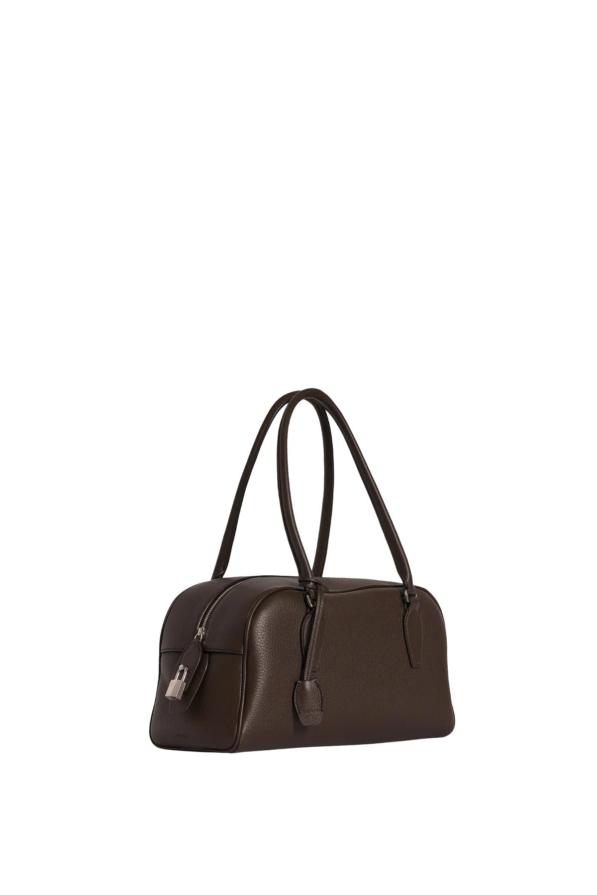 The Row E/W India Bag in Lux Grain Leather is part of the Winter 25 Collection. Bowling bag in textured calfskin leather with elongated silhouette, extended tubular handles, piping, branded metal padlock and key, and top zipper closure. Minimally finished, the natural grain surface is left intact, giving the leather a supple hand and refined texture that develops character over time.
