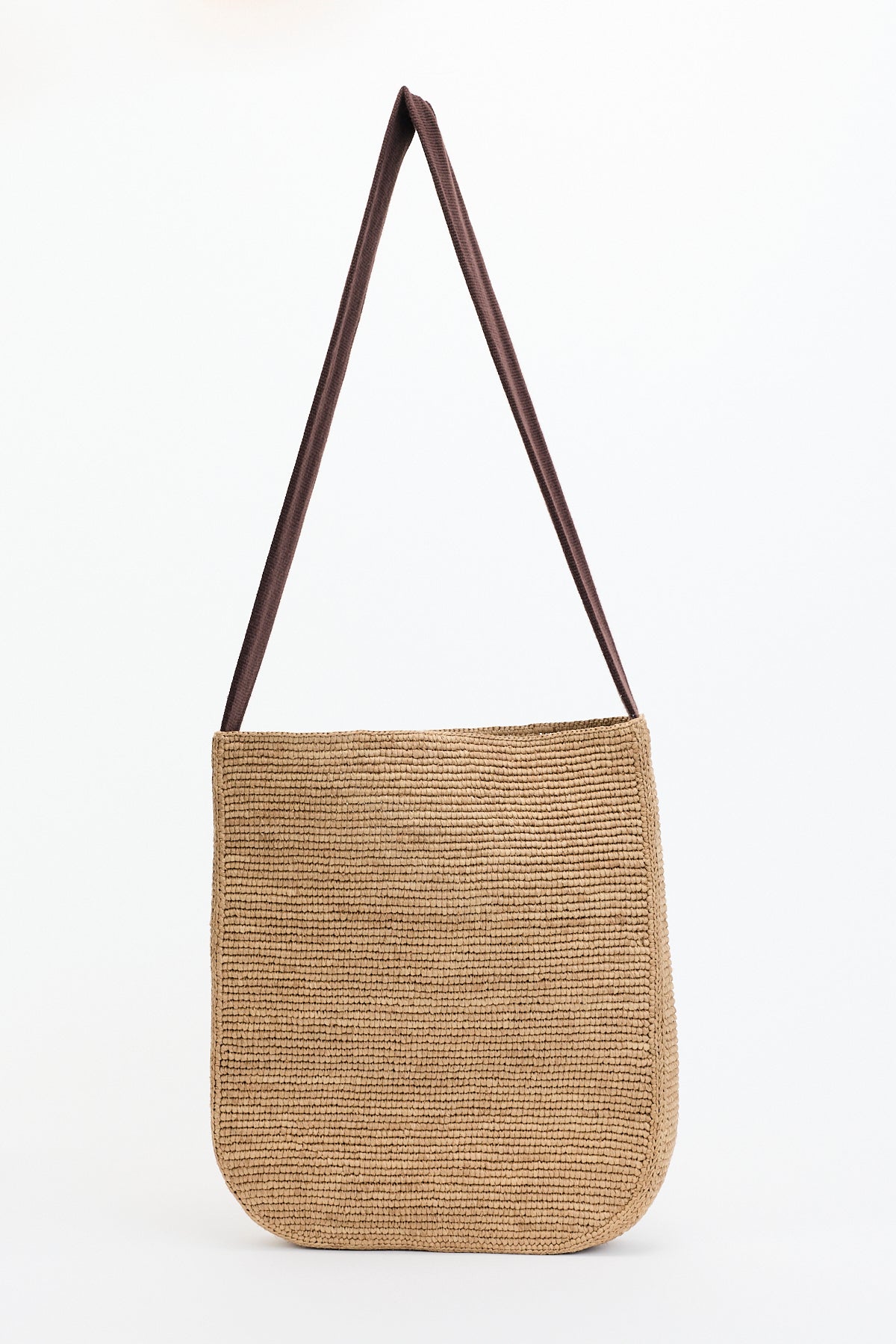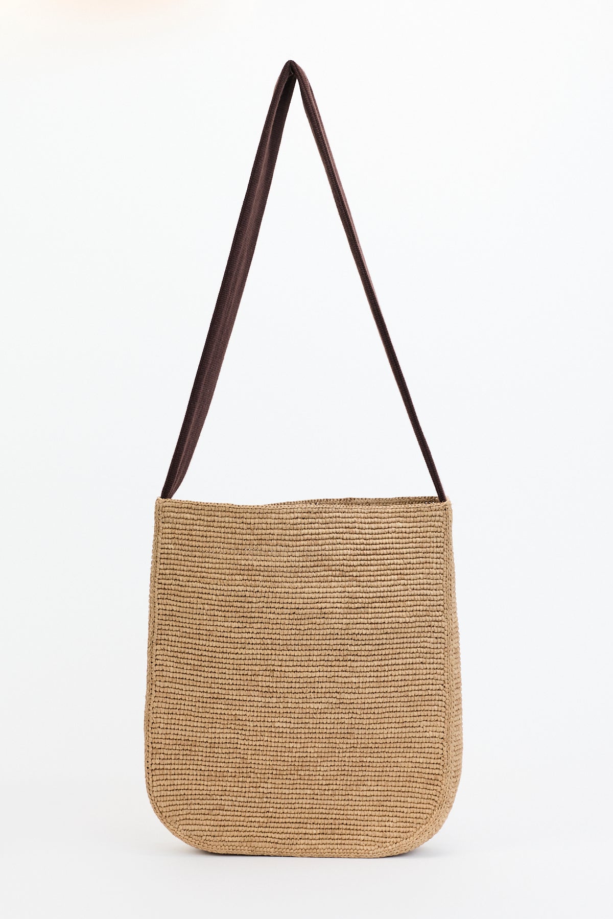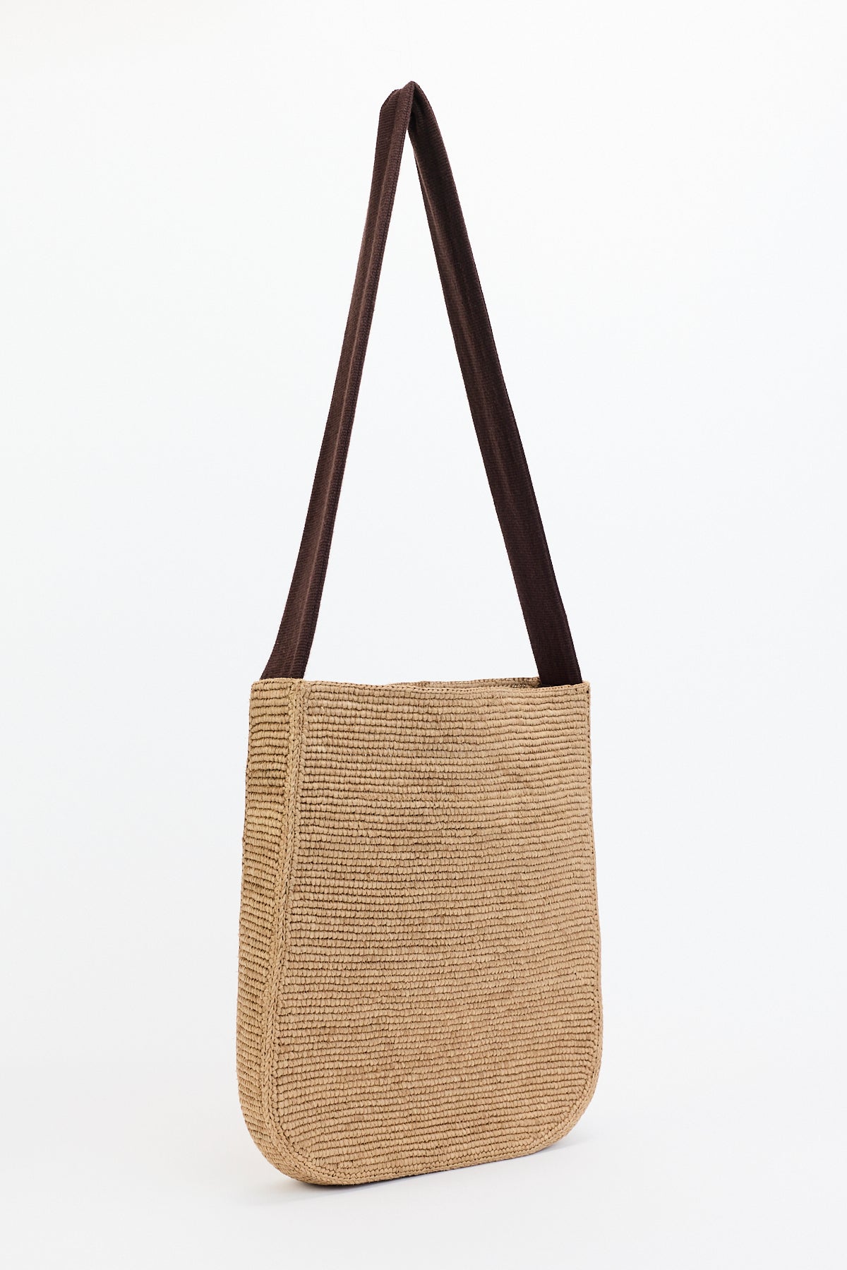 The Row Lori Shoulder Bag is part of the Spring 26 Collection. Artisanally-crafted shoulder bag in natural raffia with wide ribbon strap, gently curved base, and open top.