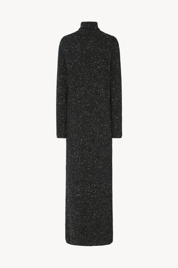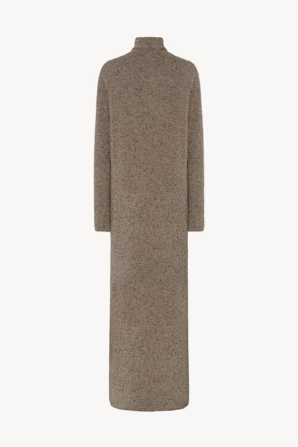 The Row Melani Dress is part of the Winter 25 Collection. Ankle-length column dress in speckled mid-weight cashmere with rolled turtleneck and seamless construction.