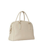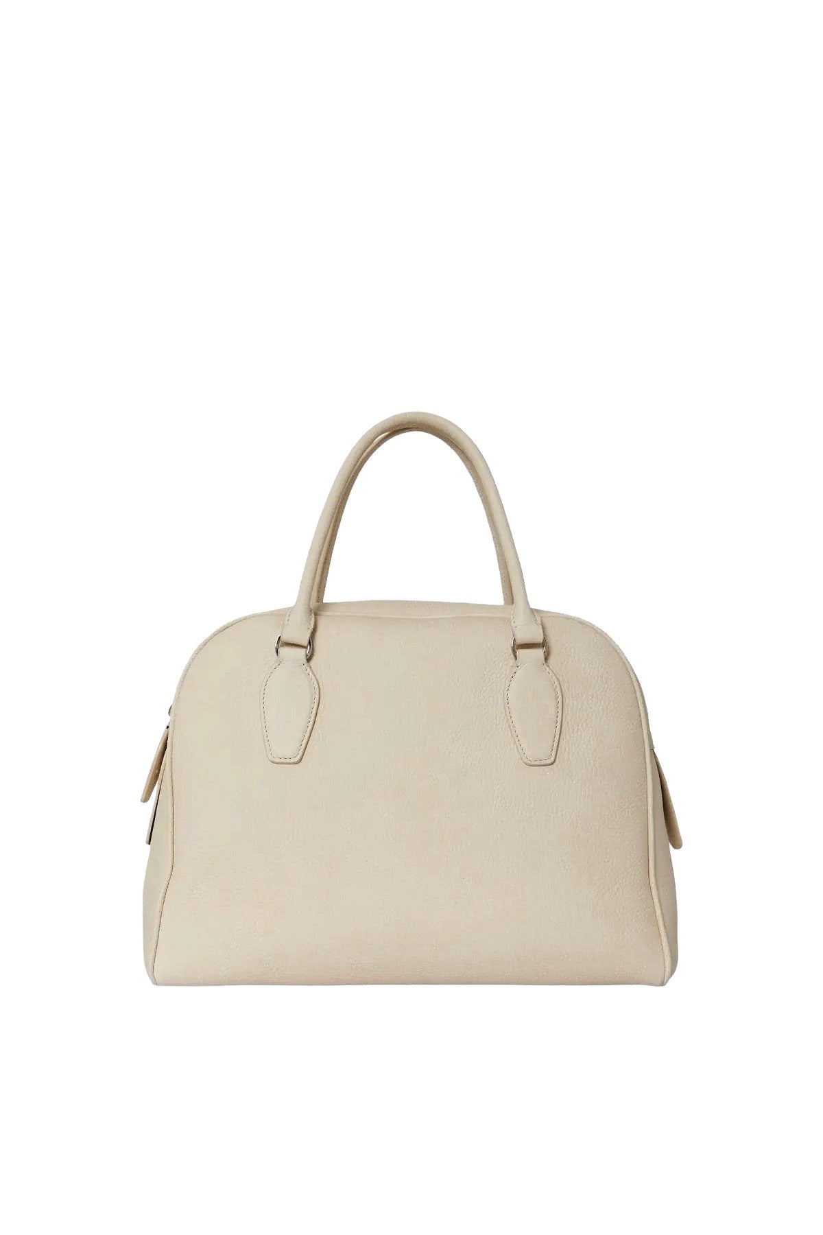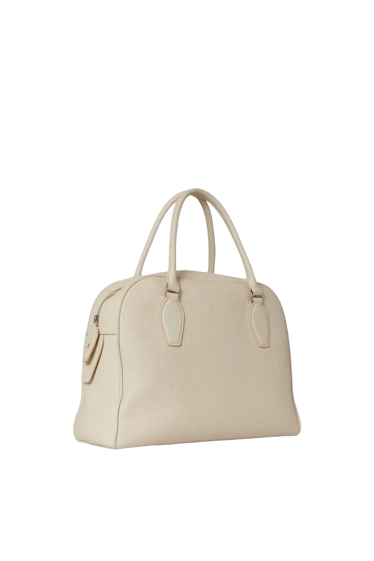 INFO Updated bowling bag in leather with tubular handles, branded metal padlock and key, and zipper closure. |