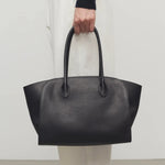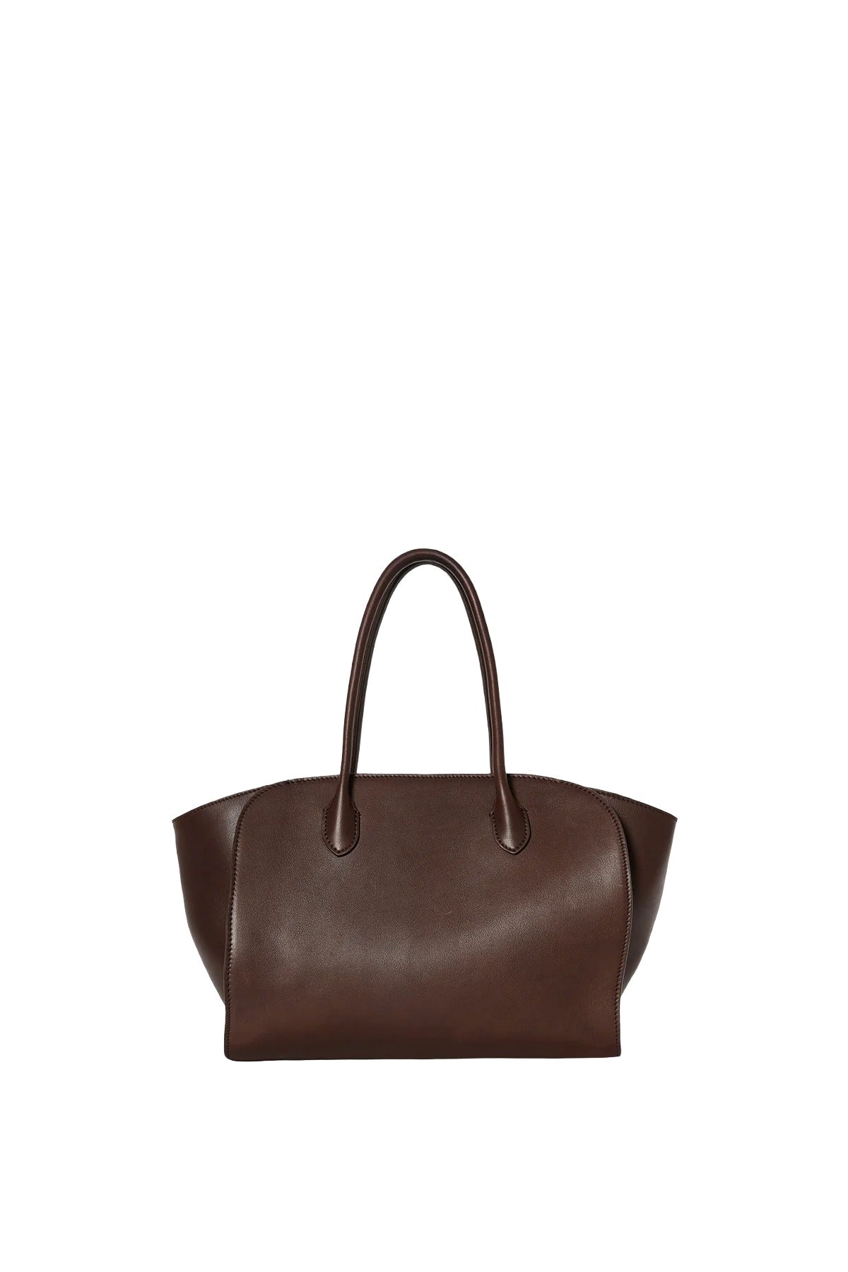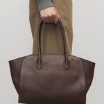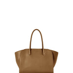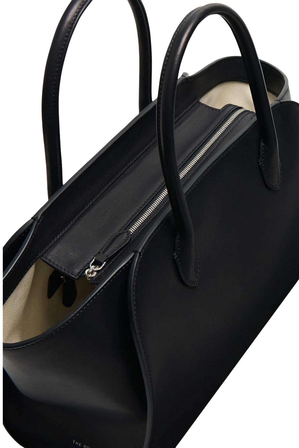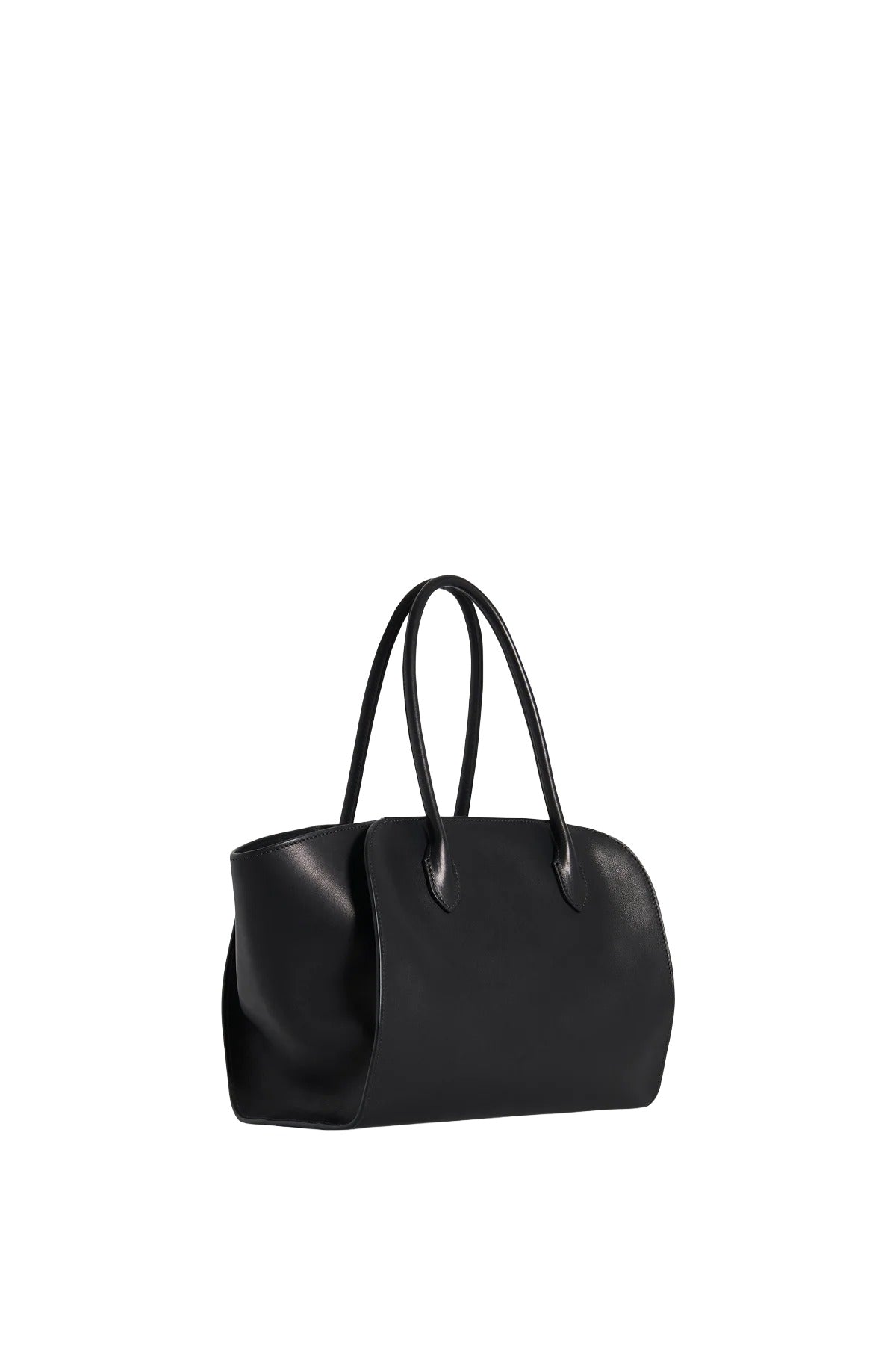 The Row Marlo 12 Bag in Saddle Leather is part of the Winter 25 Collection. Softly structured tote bag in polished saddle leather with tubular handles, gusseted side panels, and top zipper closure. Untreated and drum-dyed, the leather develops character with time and use.