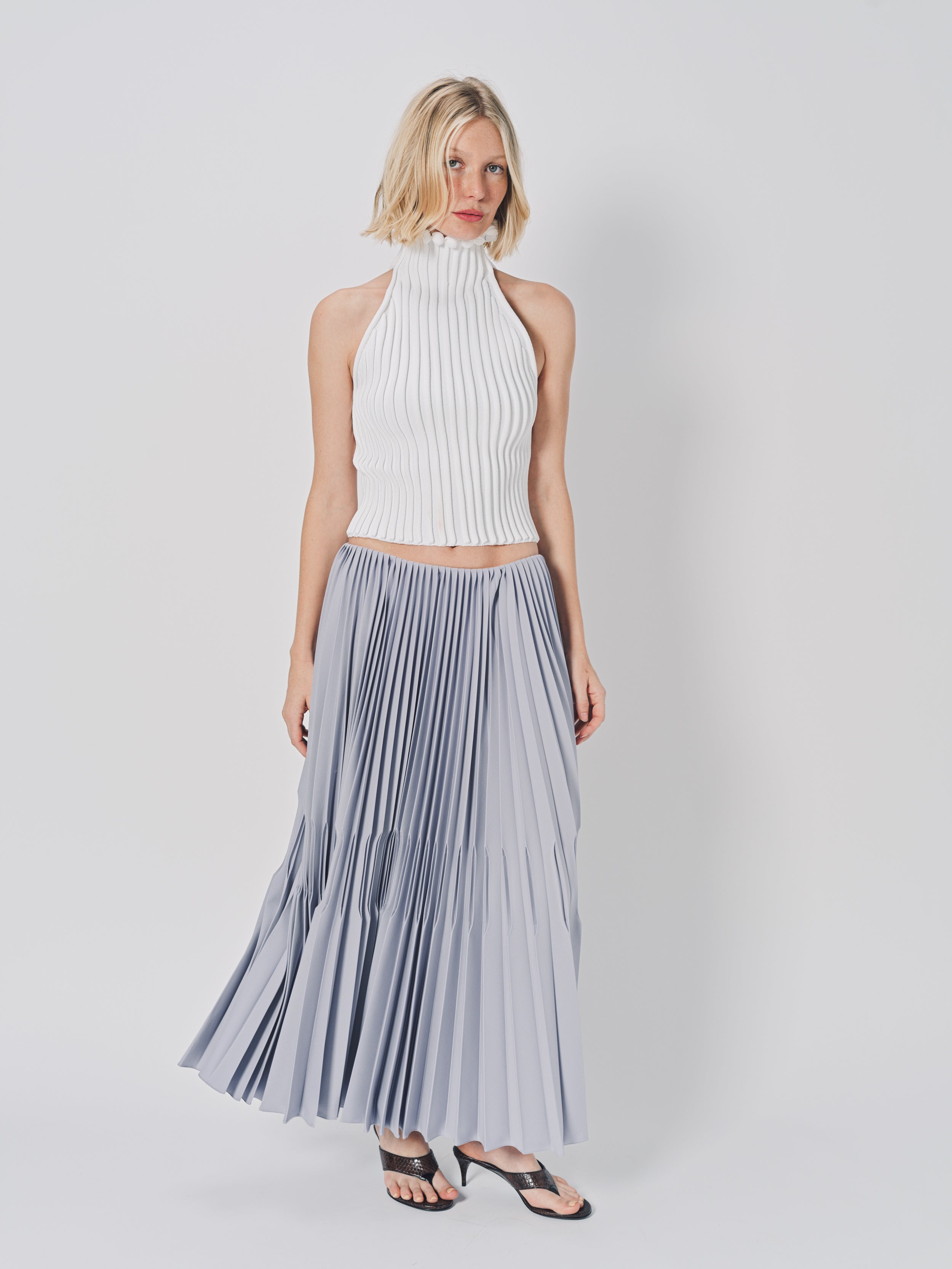Alaia Halter Top showcases expert craftsmanship with its sculpted ribbed stripe knit fabric, designed to contour the body elegantly. This crop-length piece features a refined curled trimming detail along the neckline, adding subtle sophistication to its minimalist silhouette. Ideal for those seeking a blend of modern edge and timeless style, this halter top offers both comfort and a flattering fit suited for versatile styling, from casual ensembles to elevated evening looks. Its structure enhances posture and silhouette, making it a distinctive wardrobe essential for fashion connoisseurs.