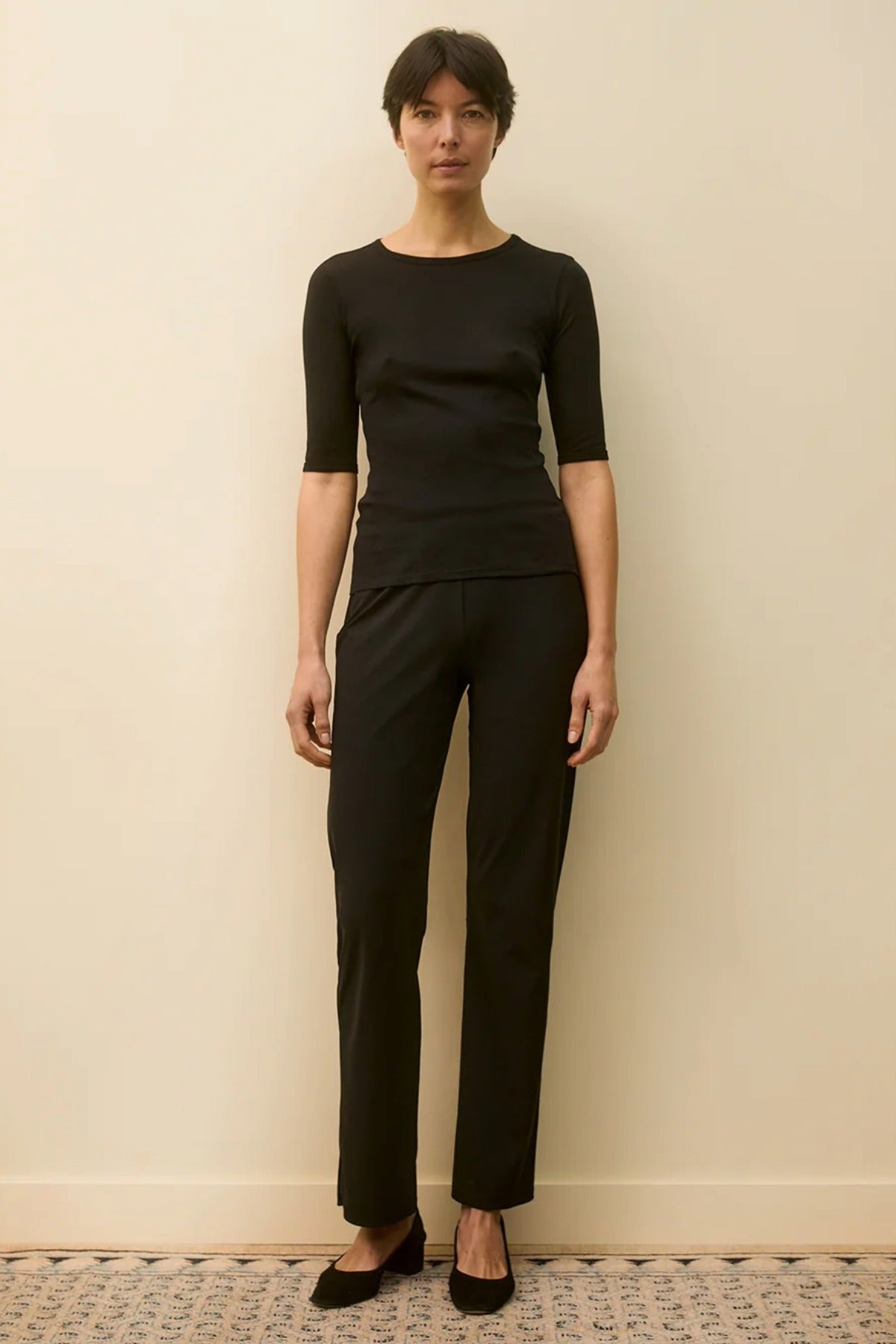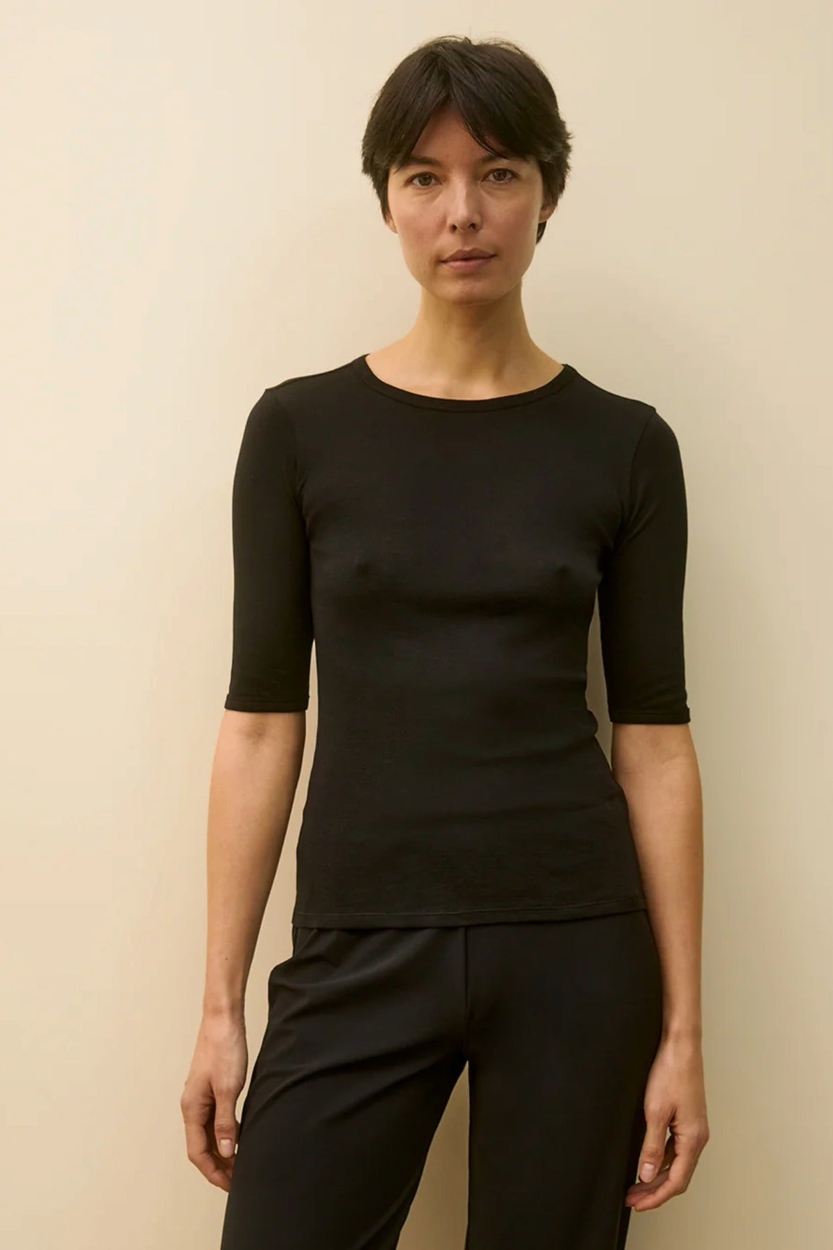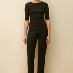 Flore Flore Anna Tee is part of the Spring 26 Collection. A lengthened t-shirt with lengthened short sleeves, made from lightweight transparent organic cotton 1 x 1 rib. Layer underneath or wear on its own during warmer days.