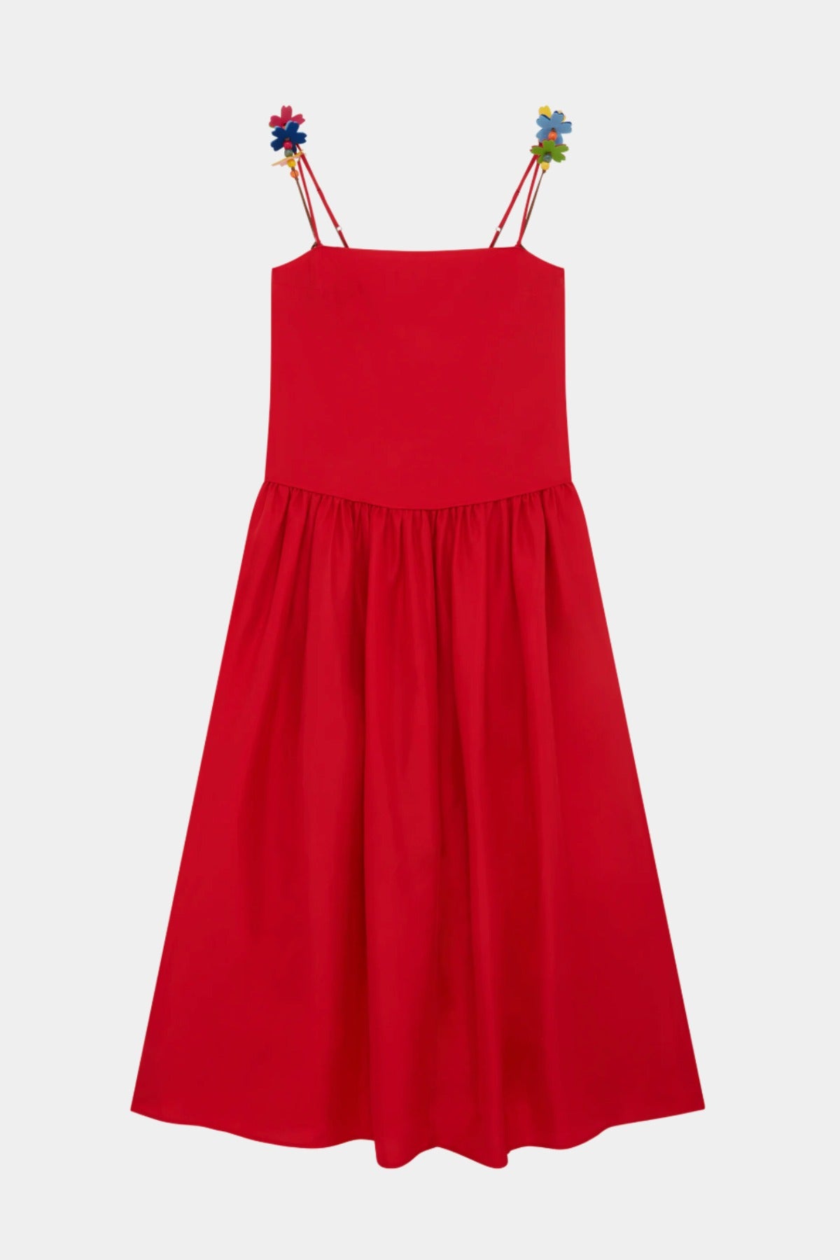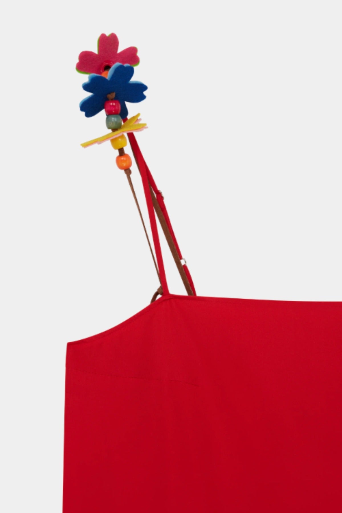Mira Mikati Low Waist Dress is part of the Spring 26 Collection. Mira loves a throw-on design, and with its floor-length cut and silk habotai fabric, this is versatile enough for everyday and evening. A new shape for SS26, it features a dropped waist and single-tiered gathered skirt. Adjustable leather straps with floral detailing and colourful beads are the perfect finishing touch.