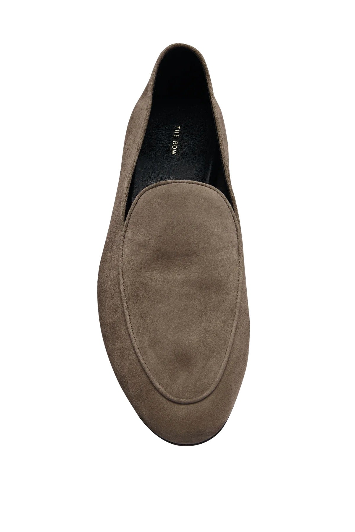 The Row Awar Flat Loafer in Leather is part of the Winter 25 Collection. Minimal loafer in smooth goatskin suede with oval toe, raised seam detail, and leather sole.