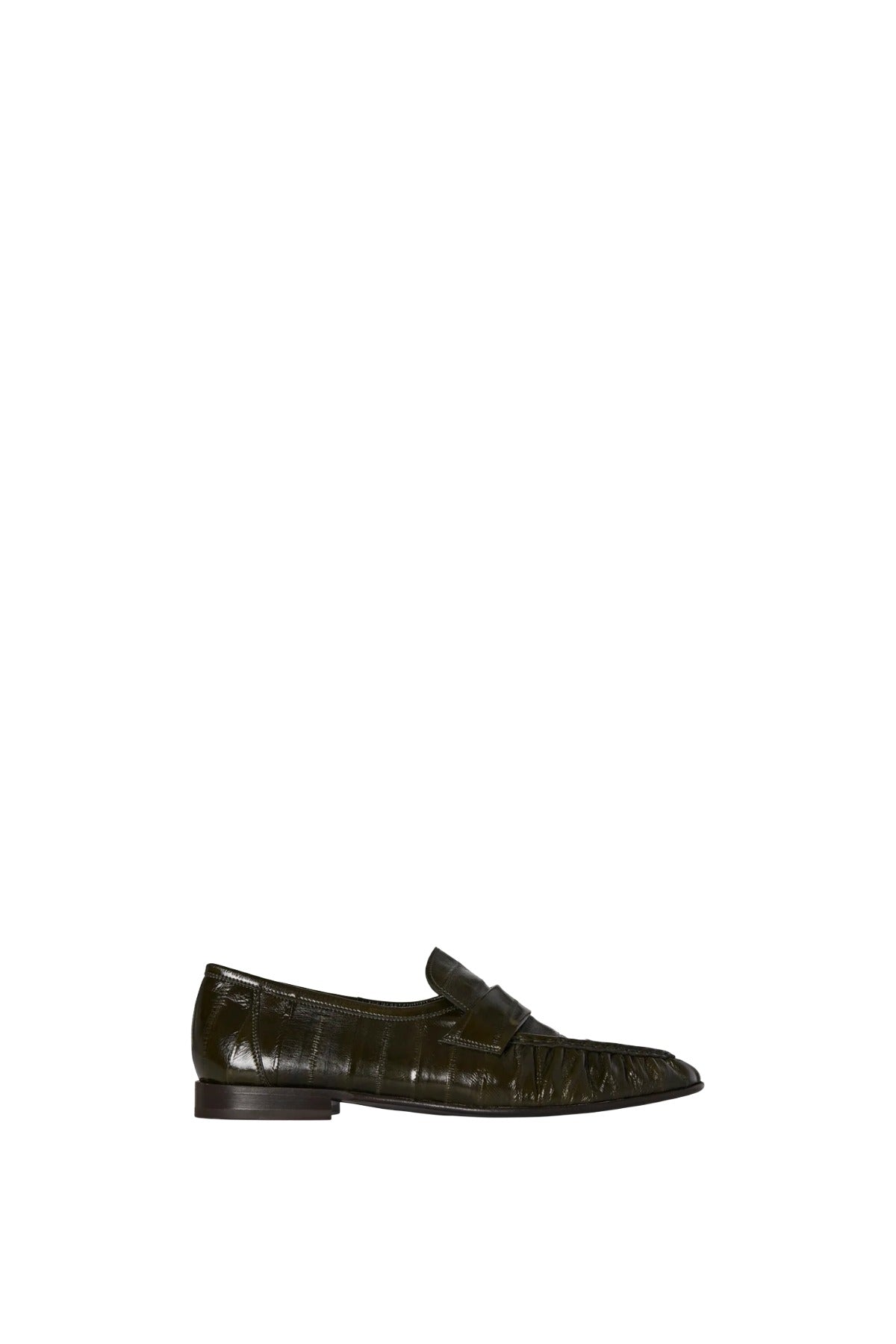 The Row Soft Loafer in Eel is part of the Winter 25 Collection. Artisanally-crafted loafer in paneled eel-skin leather with natural pleating effect and hand-painted leather sole.