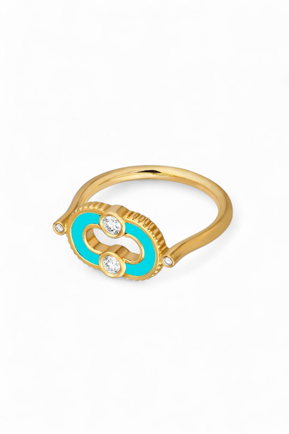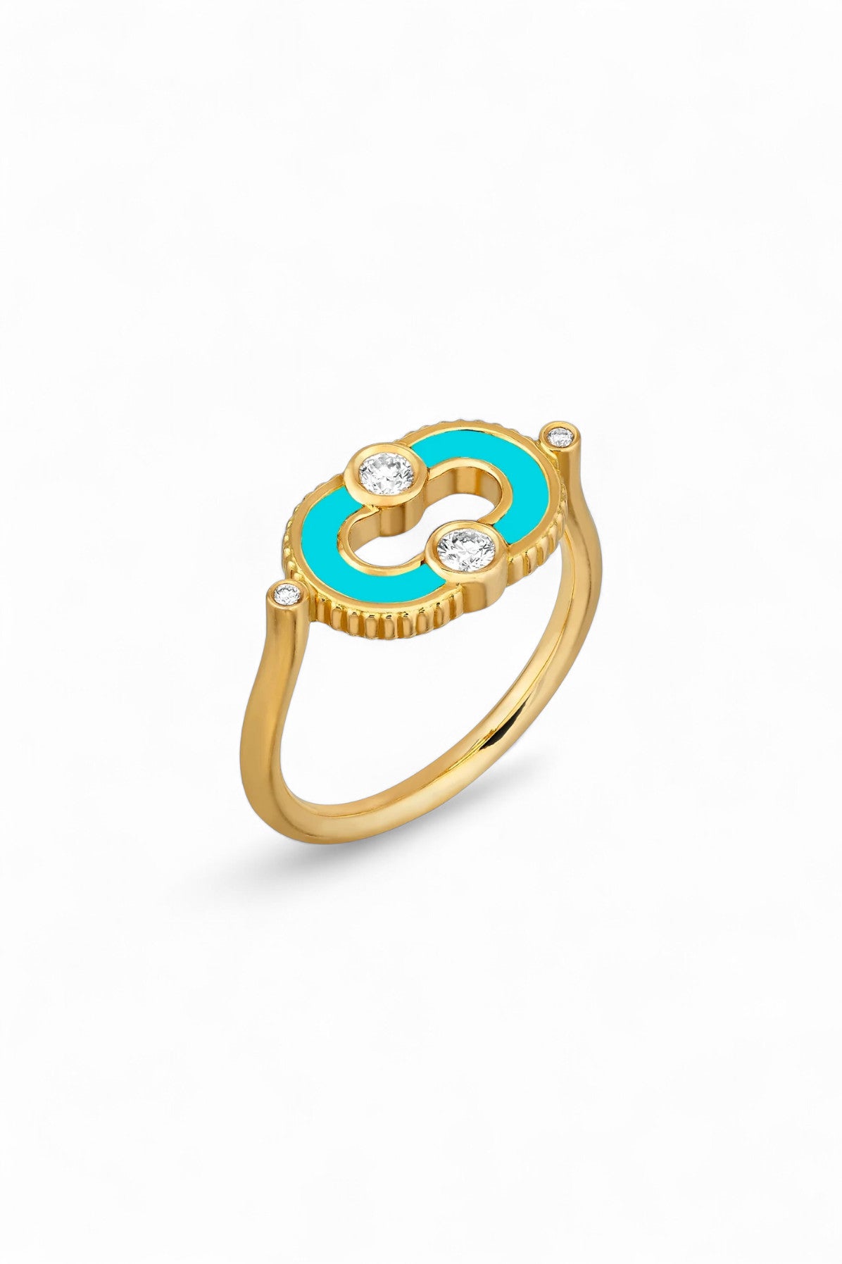 Viltier 18K Yellow Gold Turquoise and Diamond Magnetic Ring