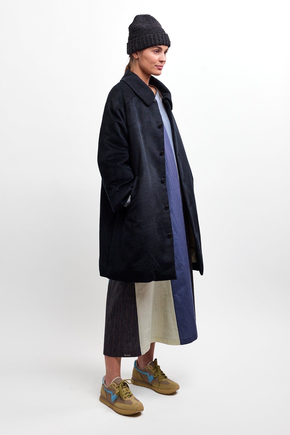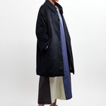 Visvim Bonnet Drivers Down Coat is part of the Fall 25 Collection. Visvim's Bonnet Drivers Down Coat represents a masterclass in refined outerwear construction. Crafted from custom brushed silk with a pressed finish, this coat delivers sophisticated elegance alongside exceptional functionality. The interior features a custom jacquard silk-linen blend lining that provides comfort and durability, while premium white goose down fill ensures superior insulation without excess bulk. Hand-finished water buffalo buttons add distinctive character and longevity to this investment piece. The 100% silk exterior offers a luxurious hand-feel and subtle sheen that elevates any wardrobe. Designed for discerning collectors who appreciate meticulous craftsmanship and timeless style, this coat seamlessly transitions between seasons and occasions.