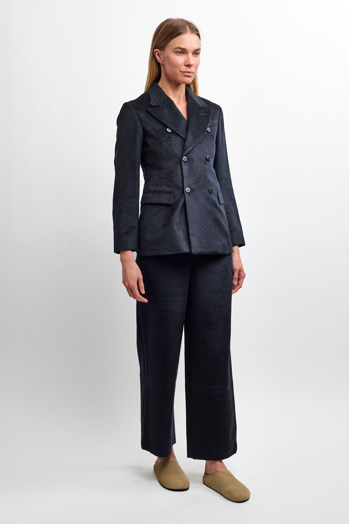 The Sabrina Double Breasted Jacket is a masterful blend of luxury and craftsmanship. Made entirely from custom brushed silk woven fabric, it offers a distinct pressed finish that enhances its sleek, refined appearance. This jacket features unique custom water buffalo buttons, carefully selected to complement the rich texture of the silk. Designed with a double-breasted silhouette, it delivers a sophisticated profile suited for those who appreciate premium tailoring and timeless style. Perfect for elevating formal or smart-casual ensembles, this jacket exemplifies attention to detail and high-quality materials in every stitch.